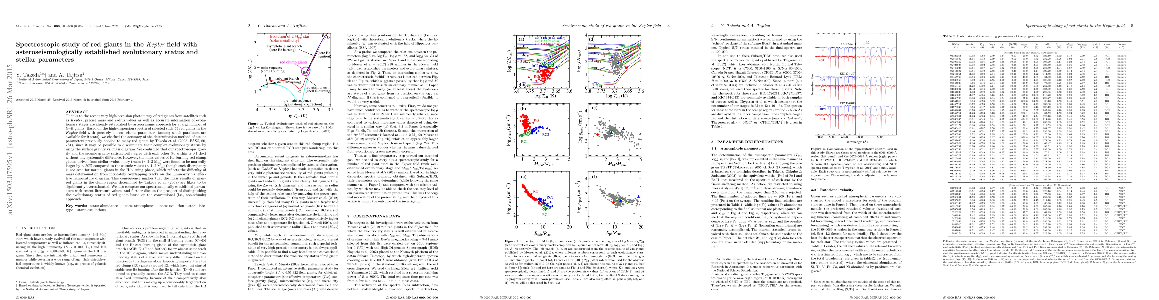 This paper investigates the spectroscopic properties of red giants in the Kepler field, comparing them with asteroseismic data to validate the accuracy of stellar parameter determination methods. The study finds good agreement between spectroscopic and seismic surface gravities but notes a significant overestimation in mass values for He-burning red clump giants derived from traditional methods.