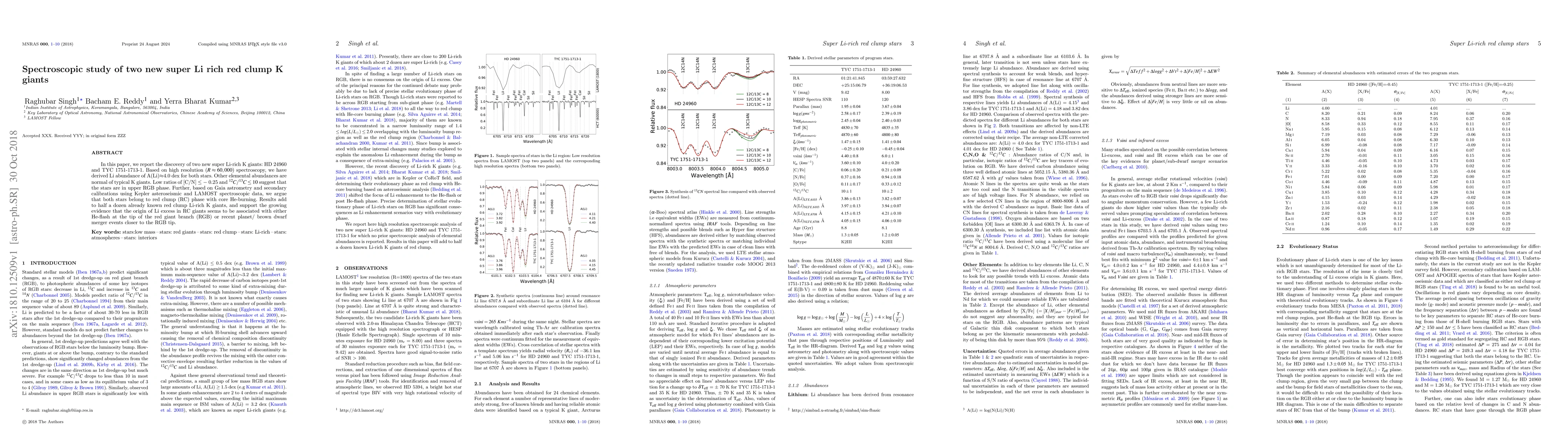 In this paper, we report the discovery of two new super Li-rich K giants: HD~24960 and TYC~1751-1713-1. Based on high resolution ($R\approx 60,000$) spectroscopy, we have derived Li abundance of A(Li)$\approx$4.0~dex for both stars. Other elemental abundances are normal of typical K giants. Low ratios of [C/N] $\leq$ $-$ 0.25 and $^{12}C/^{13}C \leq10$ suggest that the stars are in upper RGB phase. Further, based on Gaia astrometry and secondary calibrations using Kepler asteroseismic and LAMOST spectroscopic data, we argue that both stars belong to red clump (RC) phase with core He-burning. Results add to half a dozen already known red clump Li-rich K giants, and support the growing evidence that the origin of Li excess in RC giants seems to be associated with either He-flash at the tip of the red giant branch (RGB) or recent planet/ brown dwarf merger events closer to the RGB tip.