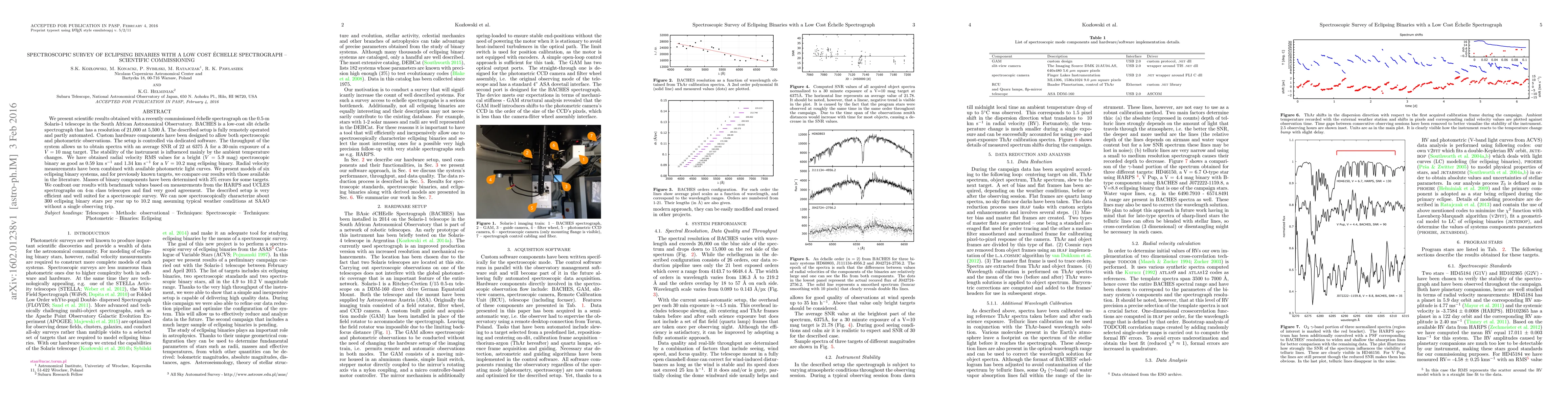 We present scientific results obtained with a recently commissioned \'{e}chelle spectrograph on the 0.5-m Solaris-1 telescope in the South African Astronomical Observatory. BACHES is a low-cost slit \'{e}chelle spectrograph that has a resolution of 21,000 at 5,500 \AA. The described setup is fully remotely operated and partly automated. Custom hardware components have been designed to allow both spectroscopic and photometric observations. The setup is controlled via dedicated software. The throughput of the system allows us to obtain spectra with an average SNR of 22 at 6375 {\AA} for a 30-min exposure of a $V=10$ mag target. The stability of the instrument is influenced mainly by the ambient temperature changes. We have obtained radial velocity RMS values for a bright (V = 5.9 mag) spectroscopic binary as good as 0.59 km s$^{-1}$ and 1.34 km s$^{-1}$ for a $V = 10.2$ mag eclipsing binary. Radial velocity measurements have been combined with available photometric light curves. We present models of six eclipsing binary systems, and for previously known targets, we compare our results with those available in the literature. Masses of binary components have been determined with 3% errors for some targets. We confront our results with benchmark values based on measurements from the HARPS and UCLES spectrographs on 4-m class telescopes and find very good agreement. The described setup is very efficient and well suited for a spectroscopic survey. We can now spectroscopically characterize about 300 eclipsing binary stars per year up to 10.2 mag assuming typical weather conditions at SAAO without a single observing trip.
