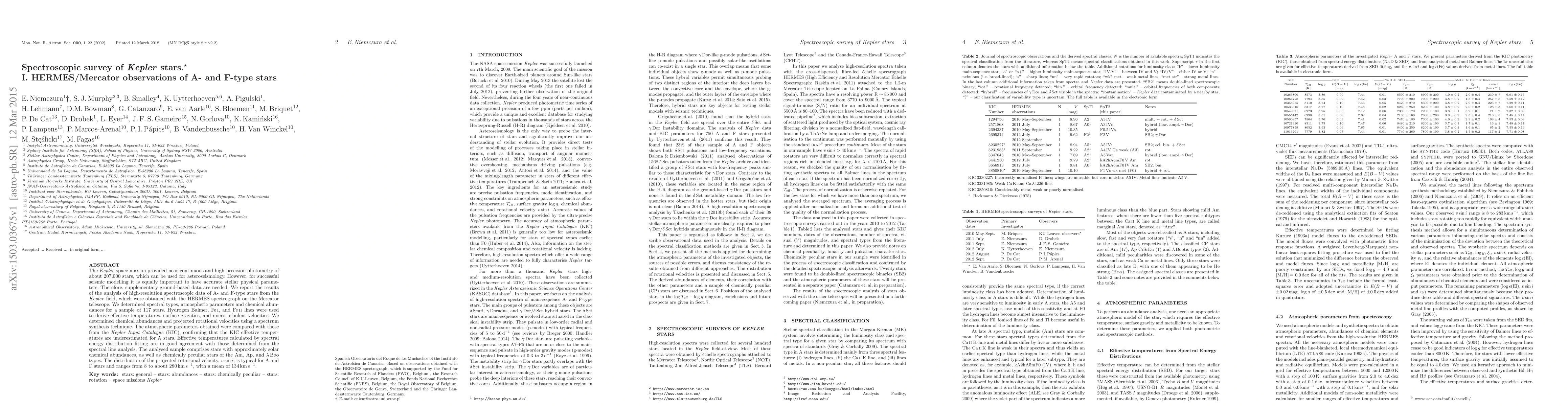 This paper reports high-resolution spectroscopic analysis of A- and F-type stars from the Kepler field using the HERMES spectrograph, determining accurate stellar physical parameters and chemical abundances for 117 stars. The study confirms discrepancies in effective temperatures for A stars in the Kepler Input Catalogue and provides a comprehensive overview of the rotational velocities and chemical compositions of the sample.