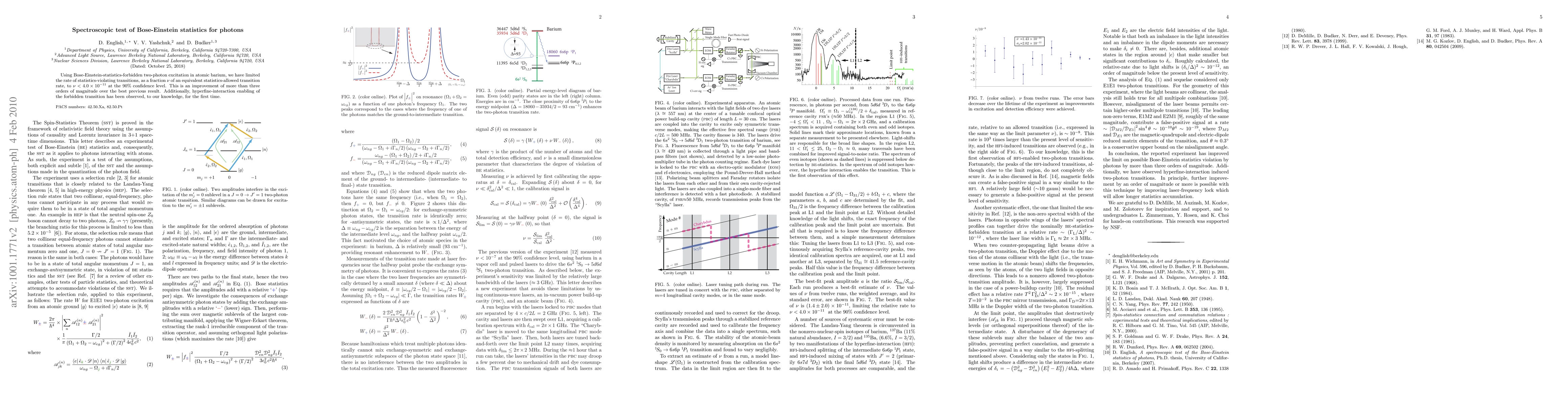 Using Bose-Einstein-statistics-forbidden two-photon excitation in atomic barium, we have limited the rate of statistics-violating transitions, as a fraction $\nu$ of an equivalent statistics-allowed transition rate, to $\nu<4.0\times10^{-11}$ at the 90% confidence level. This is an improvement of more than three orders of magnitude over the best previous result. Additionally, hyperfine-interaction enabling of the forbidden transition has been observed, to our knowledge, for the first time.