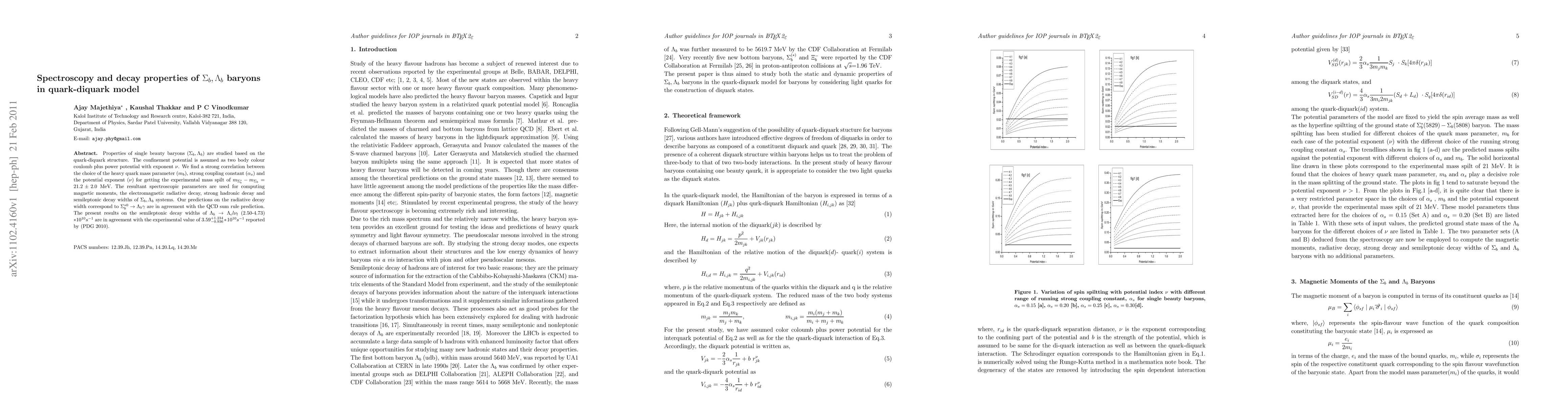 The paper presents a detailed analysis of $\Sigma_{b}, \Lambda_{b}$ baryon properties using a quark-diquark model, providing predictions for various decay widths that align with existing QCD sum rule predictions.