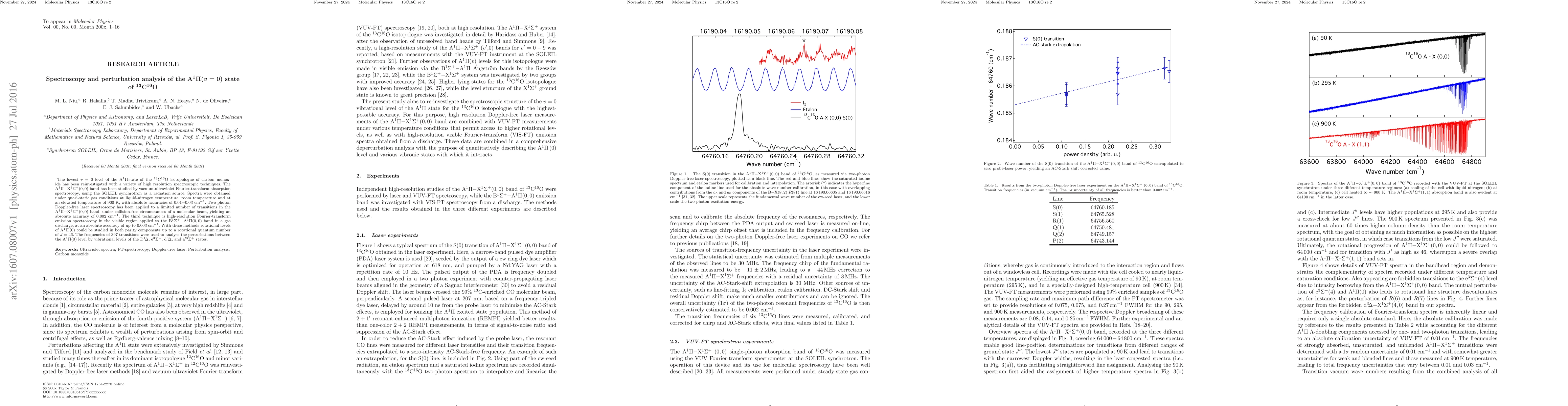 The lowest $v=0$ level of the A$^1\Pi$, state of the $^{13}$C$^{16}$O isotopologue of carbon monoxide has been reinvestigated with a variety of high resolution spectroscopic techniques. The A$^1\Pi-$X$^1\Sigma^+(0,0)$ band has been studied by vacuum-ultraviolet Fourier-transform absorption spectroscopy, using the SOLEIL synchrotron as a radiation source. Spectra were obtained under quasi-static gas conditions at liquid-nitrogen temperature, room temperature and at an elevated temperature of 900 K, with absolute accuracies of 0.01$-$0.03 cm$^{-1}$. Two-photon Doppler-free laser spectroscopy has been applied to a limited number of transitions in the A$^1\Pi-$X$^1\Sigma^+(0,0)$ band, under collision-free circumstances of a molecular beam, yielding an absolute accuracy of 0.002 cm$^{-1}$. The third technique is high-resolution Fourier-transform emission spectroscopy in the visible region applied to the B$^1\Sigma^+-$A$^1\Pi(0,0)$ band in a gas discharge, at an absolute accuracy of up to 0.003 cm$^{-1}$. With these methods rotational levels of A$^1\Pi(0)$ could be studied in both parity components up to a rotational quantum number of $J=46$. The frequencies of 397 transitions were used to analyse the perturbations between the A$^1\Pi(0)$ level by vibrational levels of the D$^1\!\Delta$, e$^3\Sigma^-$, d$^3\!\Delta$, and a$'^3\Sigma^+$ states.