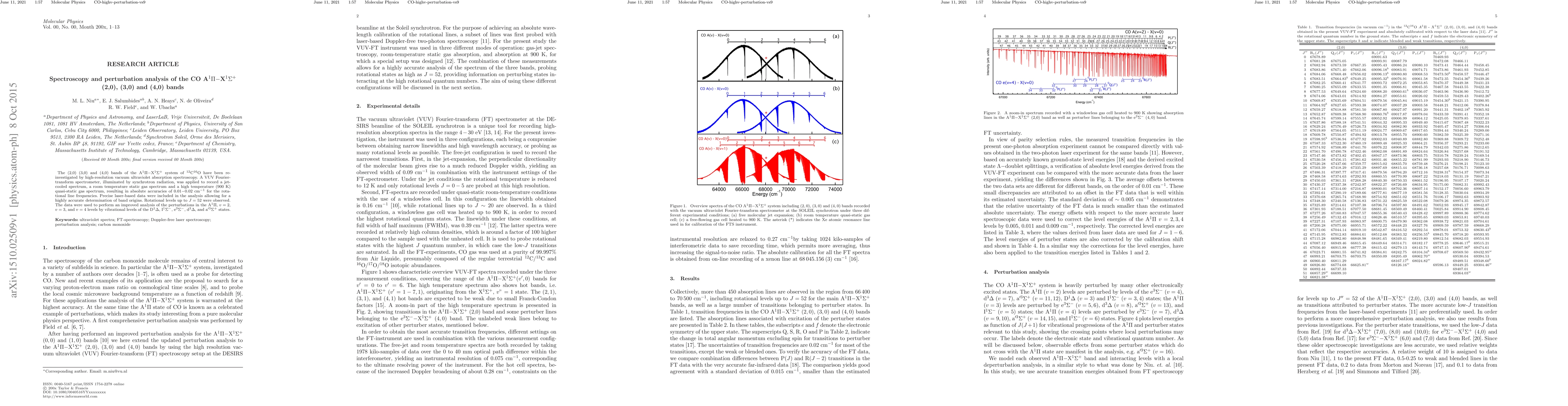 This paper reports high-resolution spectroscopy of the (2,0), (3,0), and (4,0) bands of the A$^1\Pi-$X$^1\Sigma^+$ system in $^{12}$C$^{16}$O, using a VUV Fourier-transform spectrometer. The study provides precise rotational line frequencies and analyzes perturbations affecting the $v=2$, $v=3$, and $v=4$ levels from various vibrational states.