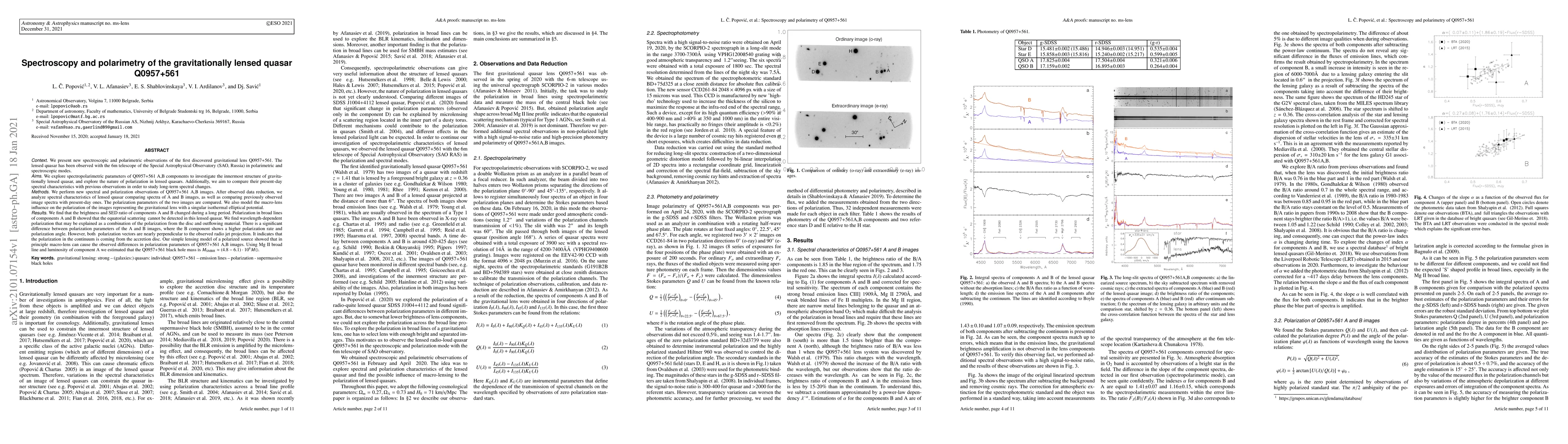 This paper reports new spectroscopic and polarimetric observations of the gravitationally lensed quasar Q0957+561, revealing significant changes in brightness and spectral energy distribution ratios between its components over time. The study finds wavelength-dependent polarization likely from the accretion disc and outflowing material, with notable differences in polarization parameters between the A and B images, suggesting macro-lens influence.