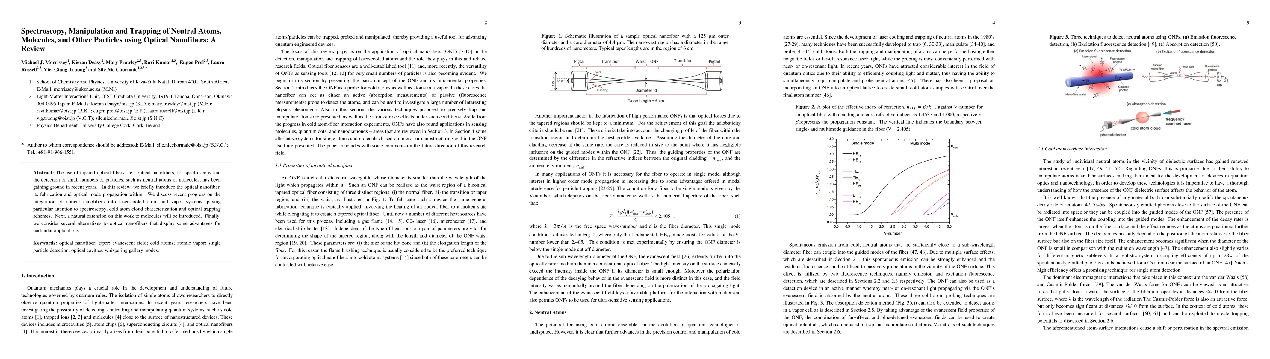 The use of tapered optical fibers, i.e., optical nanofibers, for spectroscopy and the detection of small numbers of particles, such as neutral atoms or molecules, has been gaining ground in recent years. In this review, we briefly introduce the optical nanofiber, its fabrication and optical mode propagation within. We discuss recent progress on the integration of optical nanofibers into laser-cooled atom and vapor systems, paying particular attention to spectroscopy, cold atom cloud characterization and optical trapping schemes. Next, a natural extension on this work to molecules will be introduced. Finally, we consider several alternatives to optical nanofibers that display some advantages for particular applications.