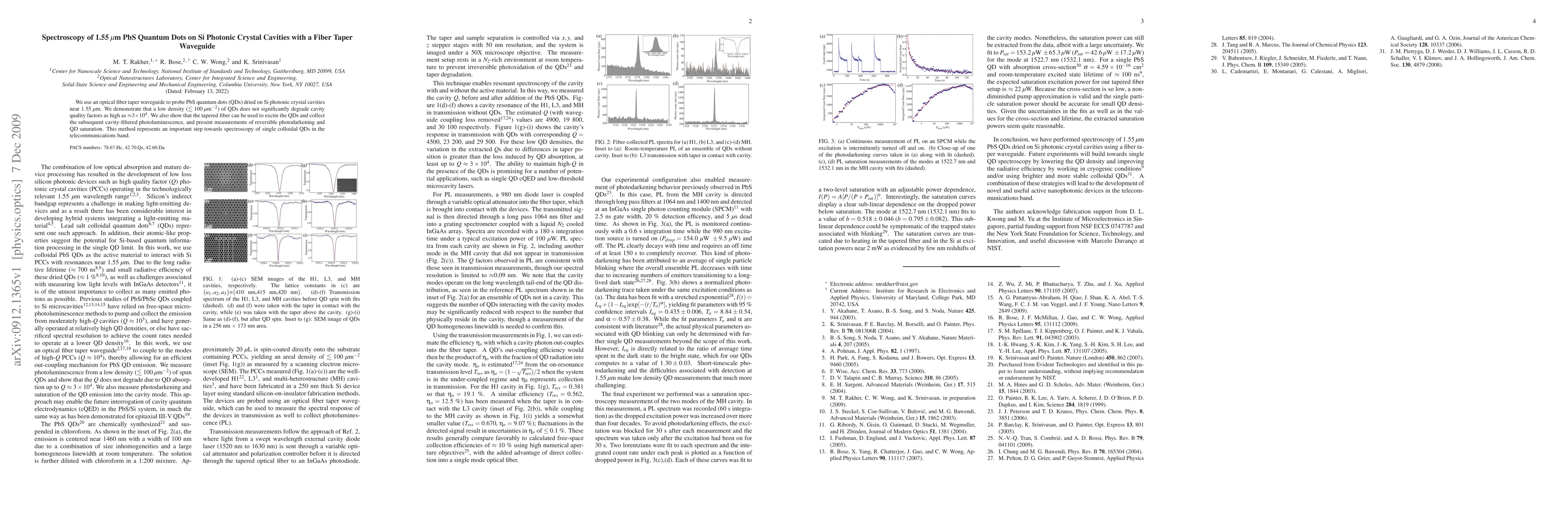 This study investigates PbS quantum dots on Si photonic crystal cavities at 1.55 µm using a fiber taper waveguide, demonstrating that low-density QDs do not degrade cavity quality factors and showing reversible photodarkening and QD saturation. The technique paves the way for spectroscopy of single colloidal QDs in the telecommunications band.
