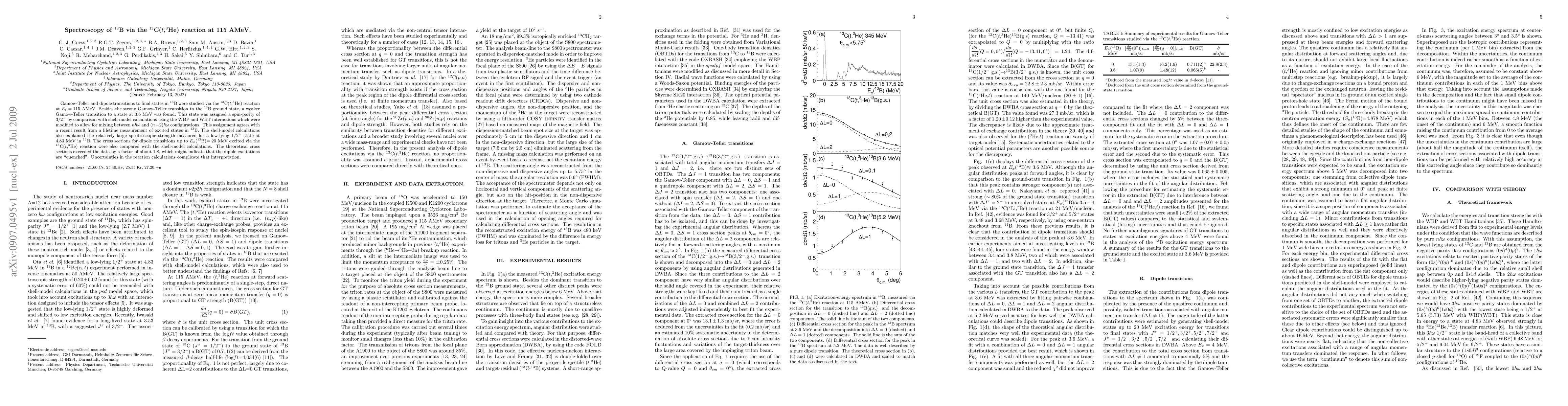The research utilized the 13C(t,3He) reaction at 115 AMeV to study Gamow-Teller and dipole transitions to final states in 13B, extracting spectroscopic information.