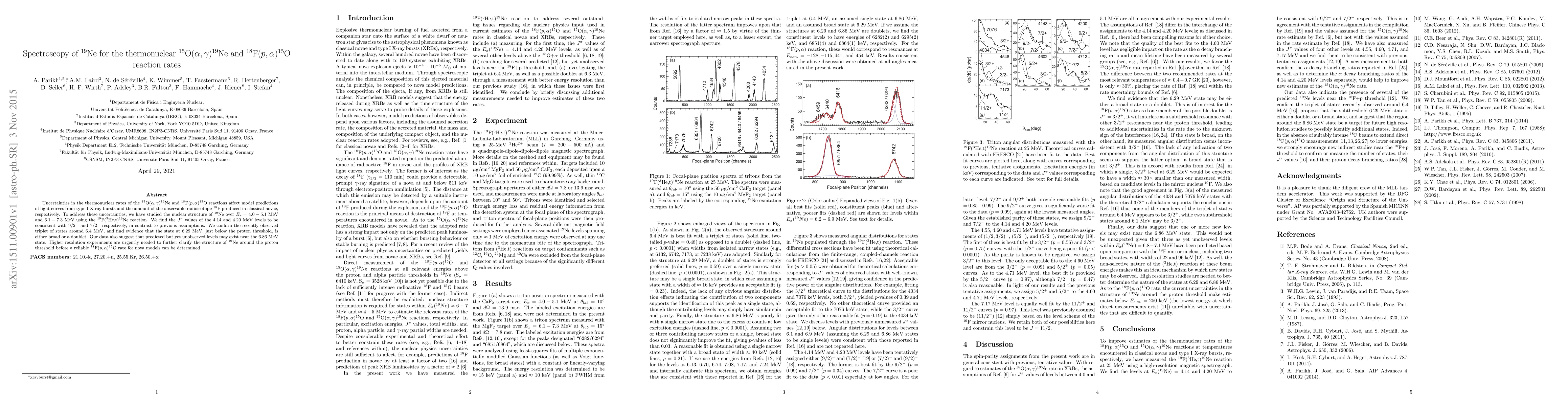 This study investigates the nuclear structure of $^{19}$Ne to refine the thermonuclear reaction rates for $^{15}$O($\alpha,\gamma$)$^{19}$Ne and $^{18}$F($p,\alpha$)$^{15}$O, crucial for modeling type I X-ray bursts and classical novae. The findings suggest new $J^{\pi}$ values for key levels and indicate potential unobserved states near the proton threshold, necessitating higher resolution experiments for accurate reaction rate predictions.