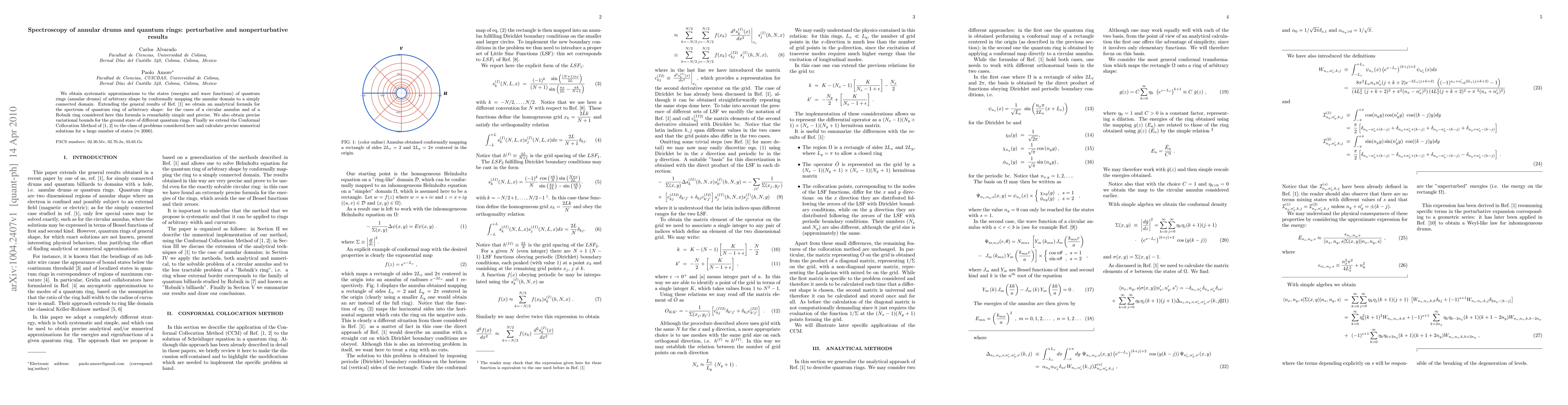 We obtain systematic approximations to the states (energies and wave functions) of quantum rings (annular drums) of arbitrary shape by conformally mapping the annular domain to a simply connected domain. Extending the general results of Ref.\cite{Amore09} we obtain an analytical formula for the spectrum of quantum ring of arbirtrary shape: for the cases of a circular annulus and of a Robnik ring considered here this formula is remarkably simple and precise. We also obtain precise variational bounds for the ground state of different quantum rings. Finally we extend the Conformal Collocation Method of \cite{Amore08,Amore09} to the class of problems considered here and calculate precise numerical solutions for a large number of states ($\approx 2000$).