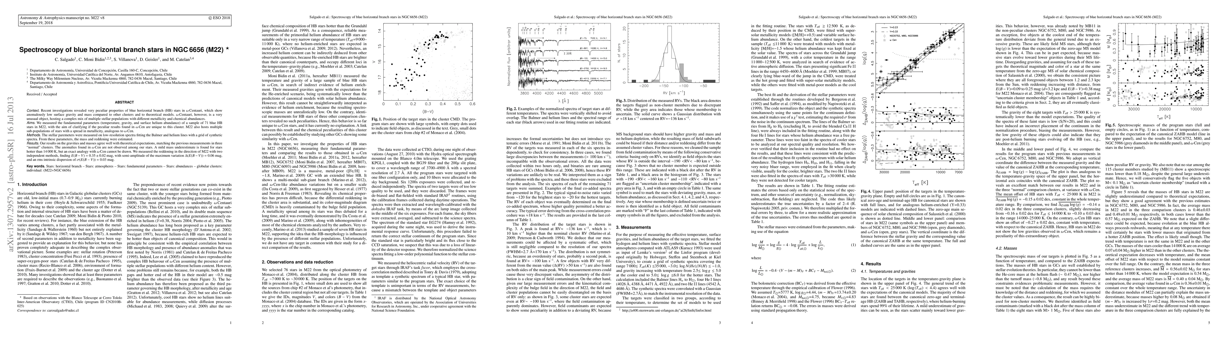 This paper investigates the fundamental parameters of 71 blue horizontal branch stars in NGC 6656 (M22) to determine if the anomalies seen in ω Centauri's blue HB stars are unique to that cluster. The study finds that M22's blue HB stars have normal gravities and masses, unlike the peculiar ω Centauri stars, suggesting the anomalies are not universal among multiple stellar population clusters.