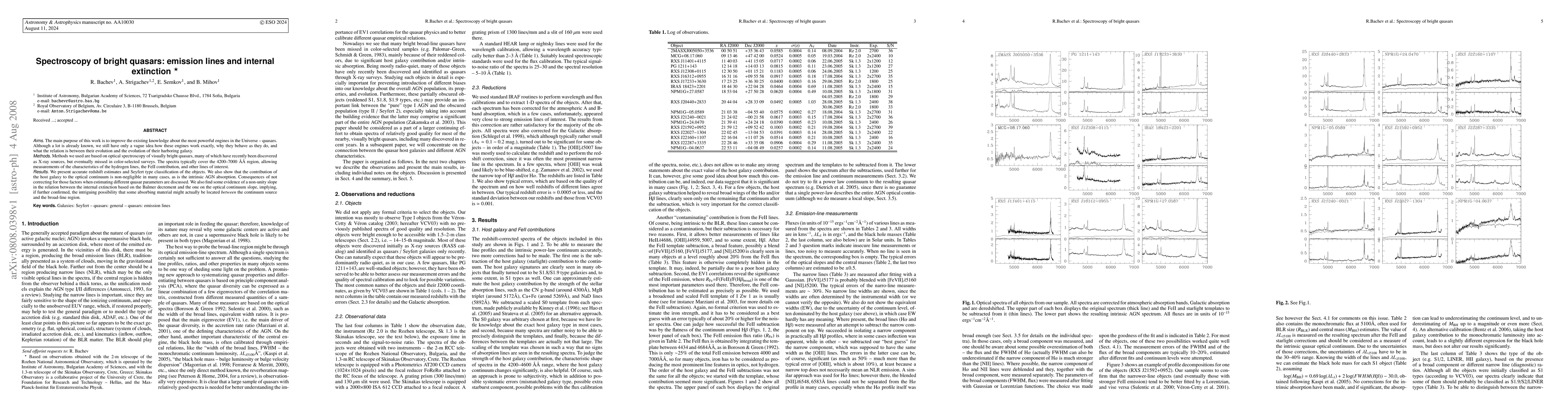 The main purpose of this work is to improve the existing knowledge about the most powerful engines in the Universe - quasars. Although a lot is already known, we still have only a vague idea how these engines work exactly, why they behave as they do, and what the relation is between their evolution and the evolution of their harboring galaxy. Methods we used are based on optical spectroscopy of visually bright quasars, many of which have recently been discovered as X-ray sources, but eventually missed in color-selected surveys. The spectra typically cover the 4200-7000 AA region, allowing measurements of the characteristics of the hydrogen lines, the FeII contribution, and other lines of interest. We present accurate redshift estimates and Seyfert type classification of the objects. We also show that the contribution of the host galaxy to the optical continuum is non-negligible in many cases, as is the intrinsic AGN absorption. Consequences of not correcting for those factors when estimating different quasar parameters are discussed. We also find some evidence of a non-unity slope in the relation between the internal extinction based on the Balmer decrement and the one on the optical continuum slope, implying, if further confirmed, the intriguing possibility that some absorbing material might actually be located between the continuum source and the broad-line region.