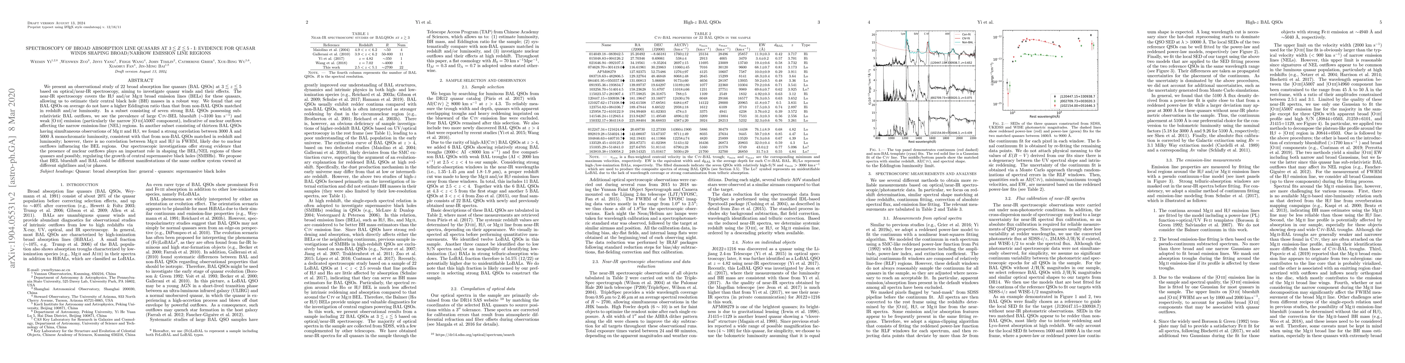 This study investigates 22 broad absorption line quasars (BAL QSOs) at $3\lesssim z \lesssim 5$ to explore the impact of quasar winds on emission line regions. The findings suggest that nuclear outflows significantly shape the broad and narrow emission lines, potentially influencing the growth of supermassive black holes.