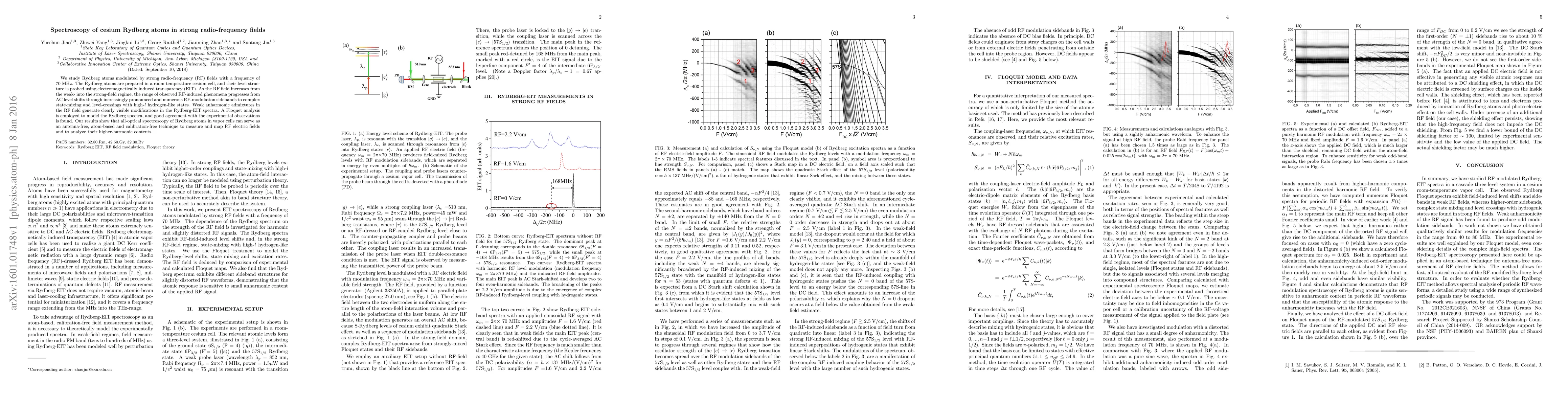 This paper investigates the spectroscopic behavior of cesium Rydberg atoms under strong radio-frequency (RF) fields at 70 MHz, revealing complex phenomena such as AC level shifts, modulation sidebands, and state-mixing. The study employs electromagnetically induced transparency (EIT) to probe the atoms, and a Floquet analysis models the observed spectra, demonstrating the potential for all-optical spectroscopy in RF field measurement.