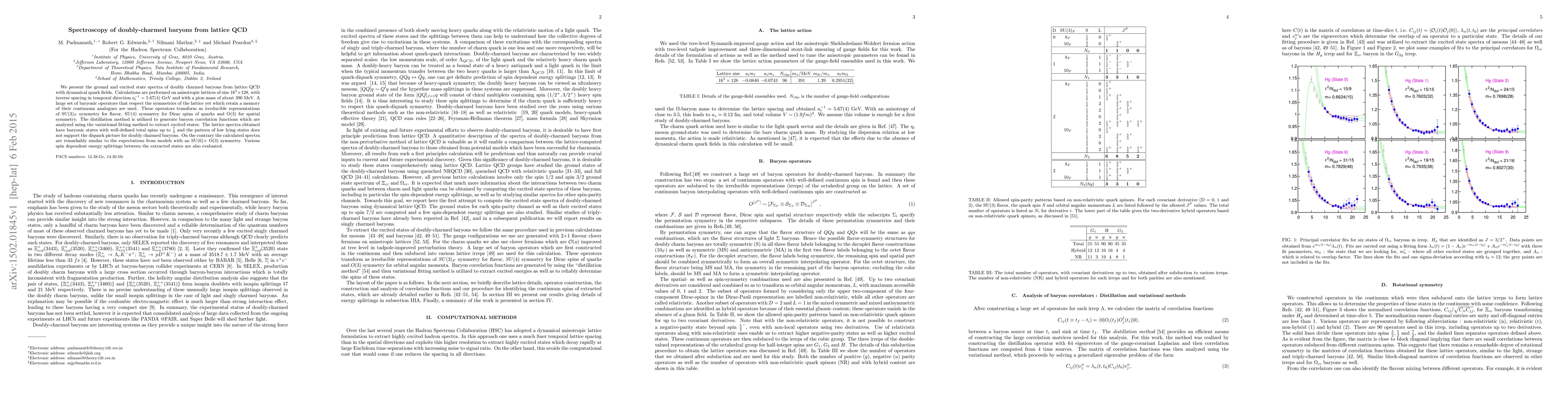 This study uses lattice QCD to determine the ground and excited state spectra of doubly charmed baryons, revealing total spins up to 7/2. The results do not support the diquark model but align with SU(6)X O(3) symmetry predictions, indicating significant spin-dependent energy splittings.