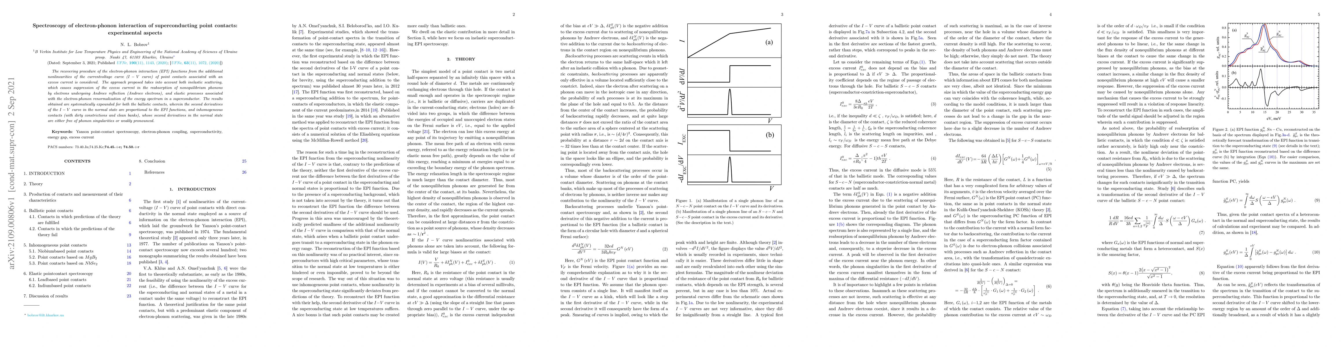 The paper presents an experimental approach to recover electron-phonon interaction functions from additional nonlinearities in the I-V curves of superconducting point contacts, considering both inelastic and elastic processes.