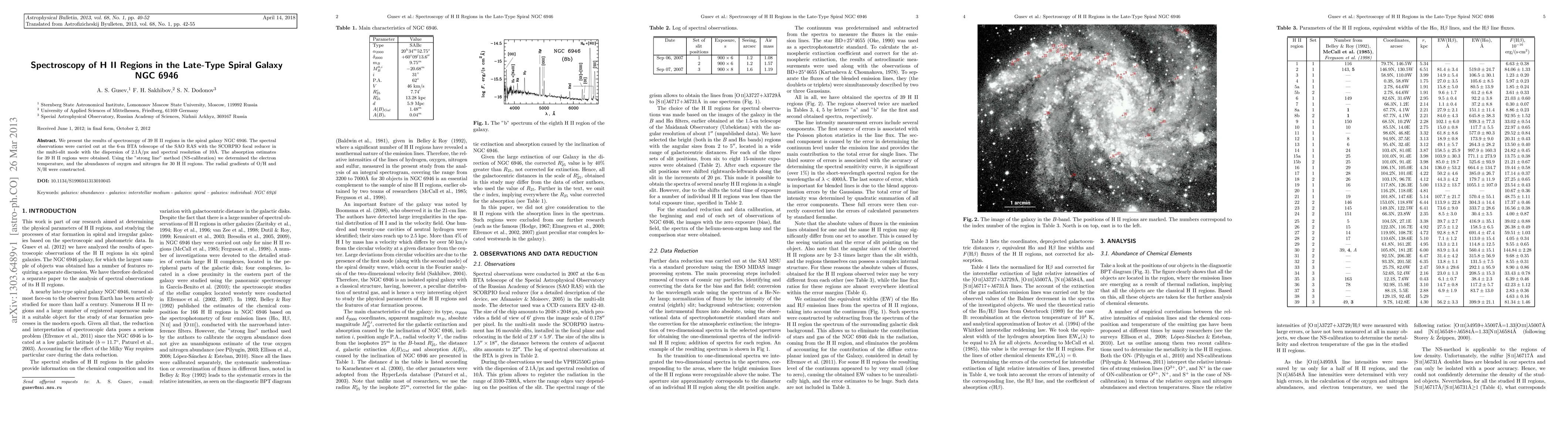 This study presents spectroscopic data from 39 H II regions in the spiral galaxy NGC 6946, revealing the electron temperature, oxygen, and nitrogen abundances using the "strong line" method. The research also constructs radial gradients for O/H and N/H abundances.