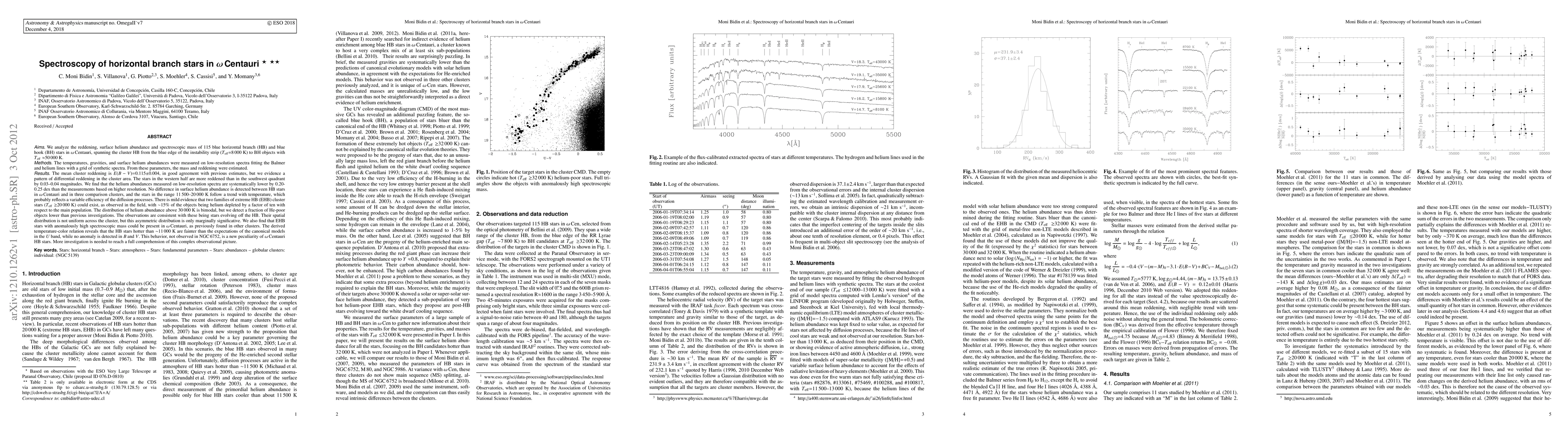 We analyze the reddening, surface helium abundance and mass of 115 horizontal branch (HB) and blue hook (BH) stars in OmegaCentauri, spanning the HB from the blue edge of the instability strip to Teff~50000K. The mean cluster reddening is E(B-V)=0.115+-0.004, in good agreement with previous estimates, but we evidence a pattern of differential reddening in the cluster area. The stars in the western half are more reddened than in the southwest quadrant by 0.03-0.04 magnitudes. We find that the helium abundances measured on low-resolution spectra are systematically lower by ~0.25 dex than the measurements based on higher resolution. No difference in helium abundance is detected between OmegaCentauri and three comparison clusters, and the stars in the range 11500-20000K follow a trend with temperature, which probably reflects a variable efficiency of the diffusion processes. There is mild evidence that two families of extreme HB (EHB) stars (Teff>20000K) could exist, as observed in the field, with ~15% of the objects being helium depleted by a factor of ten with respect to the main population. The distribution of helium abundance above 30000K is bimodal, but we detect a fraction of He-poor objects lower than previous investigations. The observations are consistent with these being stars evolving off the HB. Their spatial distribution is not uniform, but this asymmetric distribution is only marginally significative. We also find that EHB stars with anomalously high spectroscopic mass could be present in OmegaCentauri, as previously found in other clusters. The derived temperature-color relation reveals that stars hotter than 11000K are fainter than the expectations of the canonical models in the U band, while no anomaly is detected in B and V. This behavior, not observed in NGC6752, is a new peculiarity of OmegaCentauri HB stars.