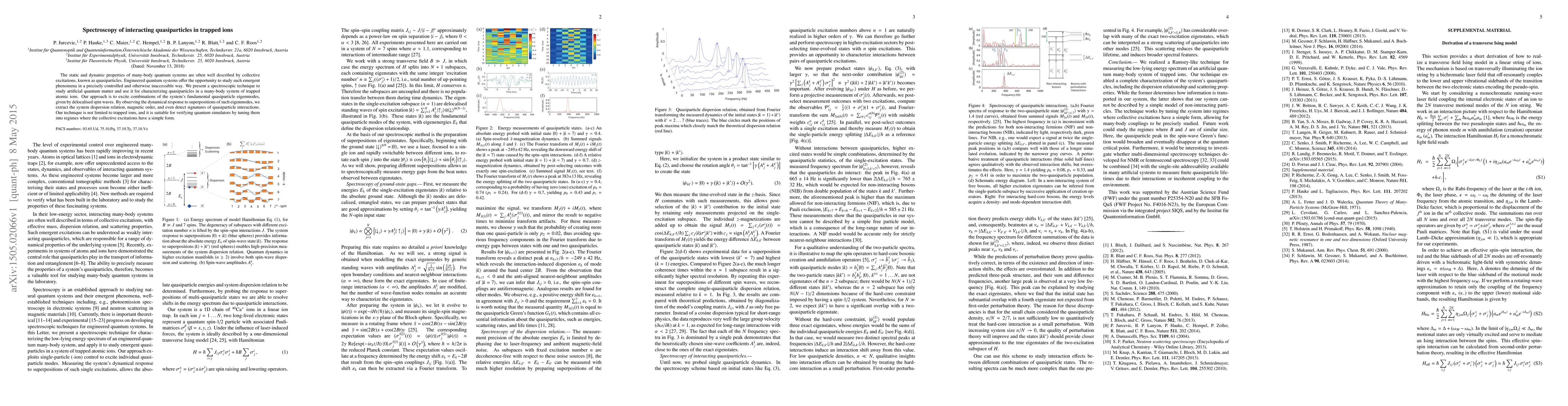 This paper introduces a spectroscopic method to study quasiparticles in trapped atomic ions, revealing their dispersion relation, magnetic order, and interaction signatures through the excitation of spin wave eigenmodes. The technique is versatile and applicable beyond trapped ions for validating quantum simulators.