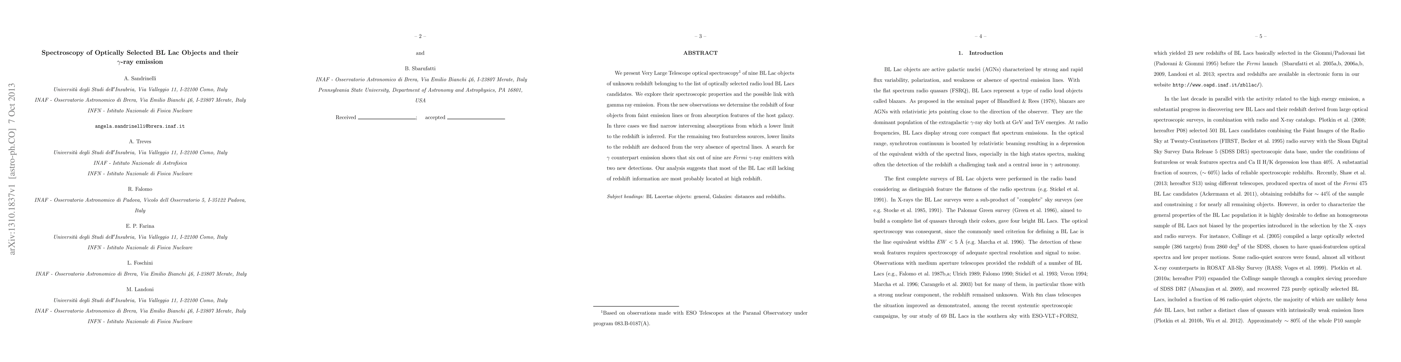 This paper reports on Very Large Telescope optical spectroscopy of nine BL Lac objects, determining the redshifts of four and suggesting high redshifts for the others. The study finds a correlation between the spectroscopic properties and the gamma-ray emission, with six out of nine objects detected as Fermi gamma-ray emitters.