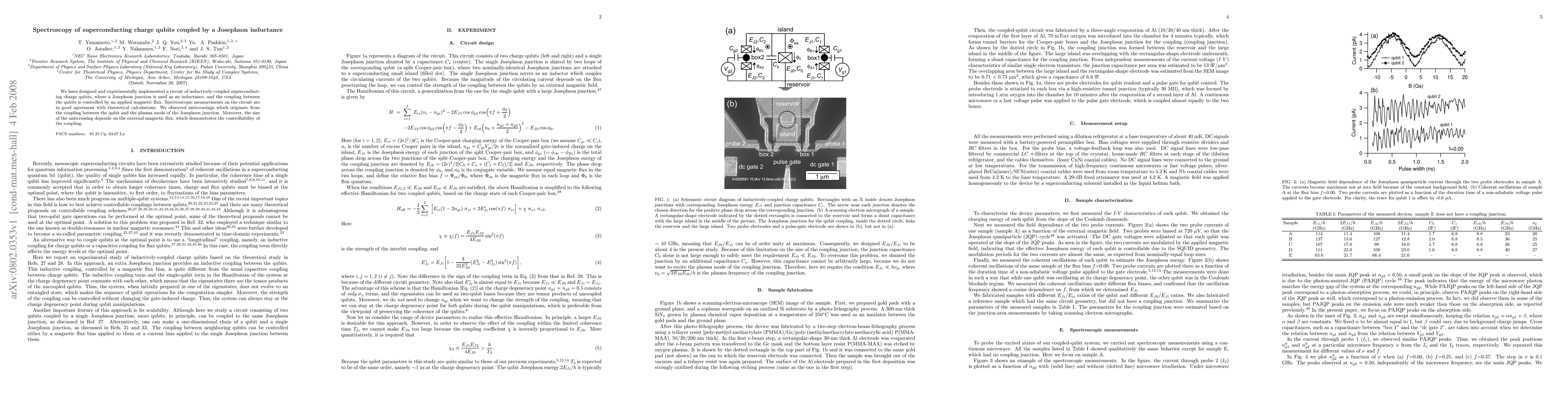 This paper describes an experimental setup of superconducting charge qubits inductively coupled via a Josephson junction, showing spectroscopic evidence of anticrossings influenced by applied magnetic flux. Theoretical calculations align with observed coupling effects, demonstrating controllable qubit interactions.