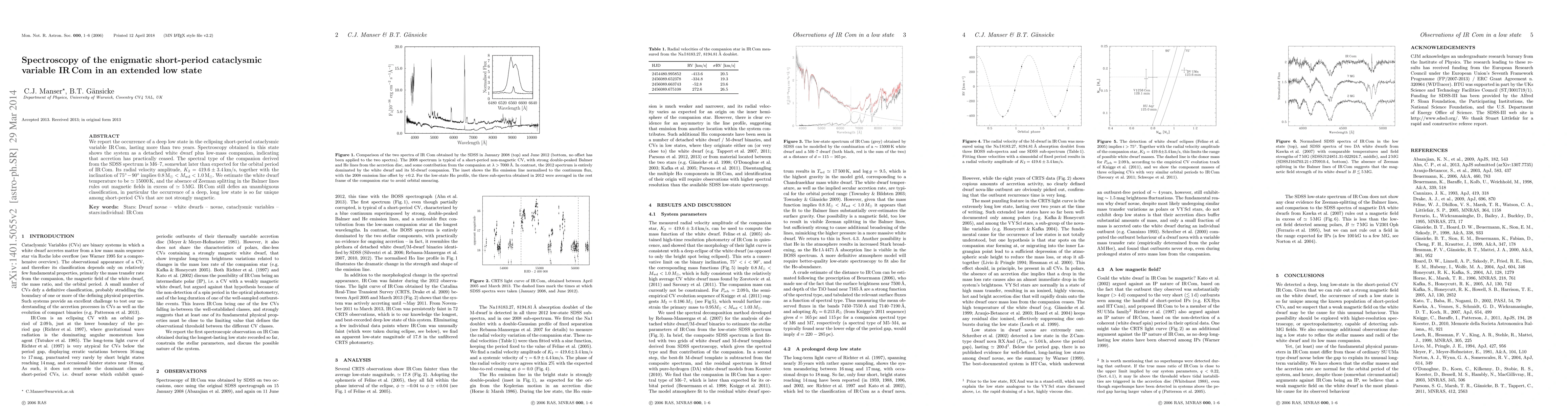cataclysmic variable IR Com, lasting more than two years. Spectroscopy obtained