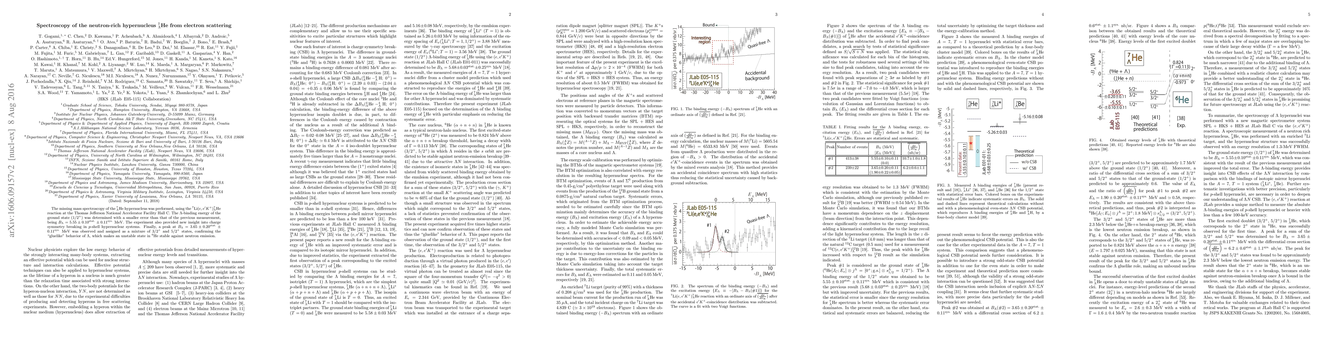 This study used electron scattering to determine the $\Lambda$ binding energy in the neutron-rich hypernucleus $^{7}_{\Lambda}$He, finding $B_{\Lambda}$ = 5.55 $\pm$ 0.10(stat.) $\pm$ 0.11(sys.) MeV with improved accuracy. Additionally, a new peak at $B_{\Lambda}$ = 3.65 $\pm$ 0.20(stat.) $\pm$ 0.11(sys.) MeV was observed, indicating a mixture of 3/2$^{+}$ and 5/2$^{+}$ states.
