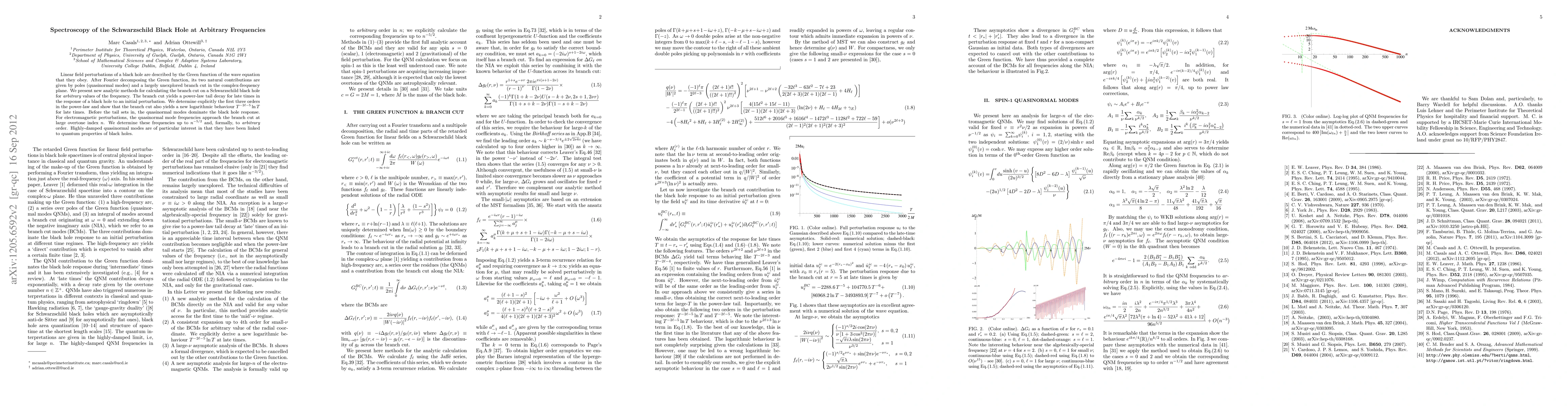 Linear field perturbations of a black hole are described by the Green function of the wave equation that they obey. After Fourier decomposing the Green function, its two natural contributions are given by poles (quasinormal modes) and a largely unexplored branch cut in the complex-frequency plane. We present new analytic methods for calculating the branch cut on a Schwarzschild black hole for arbitrary values of the frequency. The branch cut yields a power-law tail decay for late times in the response of a black hole to an initial perturbation. We determine explicitly the first three orders in the power-law and show that the branch cut also yields a new logarithmic behaviour $T^{-2\ell-5}\ln(T)$ for late times. Before the tail sets in, the quasinormal modes dominate the black hole response. For electromagnetic perturbations, the quasinormal mode frequencies approach the branch cut at large overtone index $n$. We determine these frequencies up to $n^{-5/2}$ and, formally, to arbitrary order. Highly-damped quasinormal modes are of particular interest in that they have been linked to quantum properties of black holes.