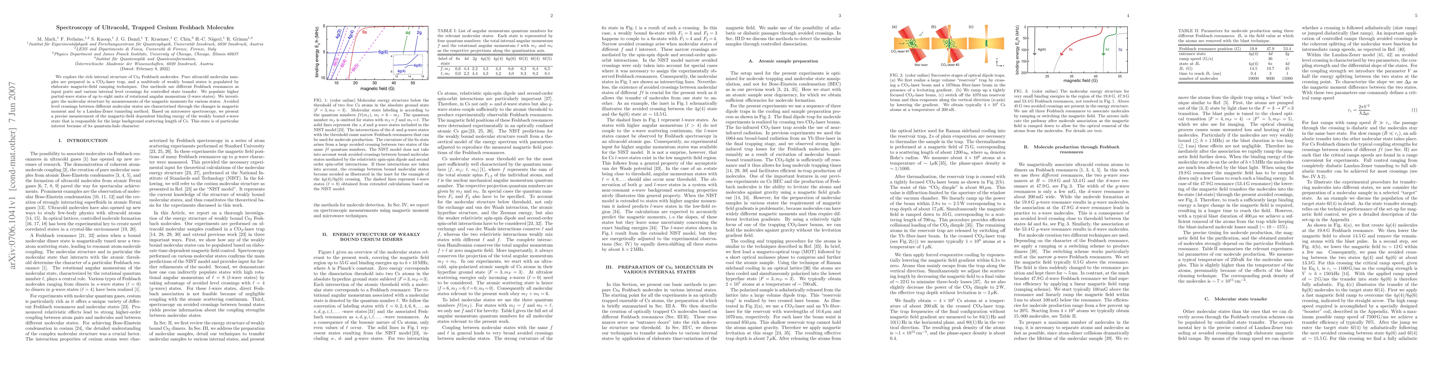This paper details spectroscopic studies of ultracold, trapped cesium Feshbach molecules, revealing the internal structure via magnetic moment measurements and microwave spectroscopy. It highlights the precise determination of binding energy for a weakly bound s-wave state, significant for understanding the large background scattering length in cesium.