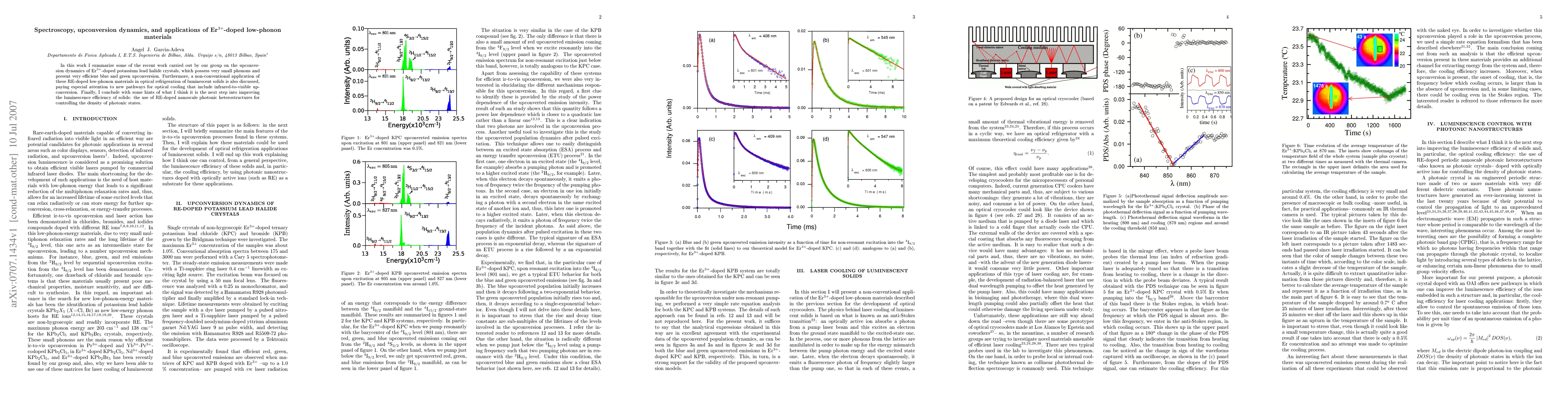This paper reviews the upconversion dynamics in Er3+-doped potassium lead halide crystals, highlighting their efficient blue and green upconversion due to low phonon interactions. It also explores their application in optical refrigeration through infrared-to-visible upconversion and suggests the use of rare-earth-doped nanoscale photonic heterostructures to enhance luminescence efficiency.