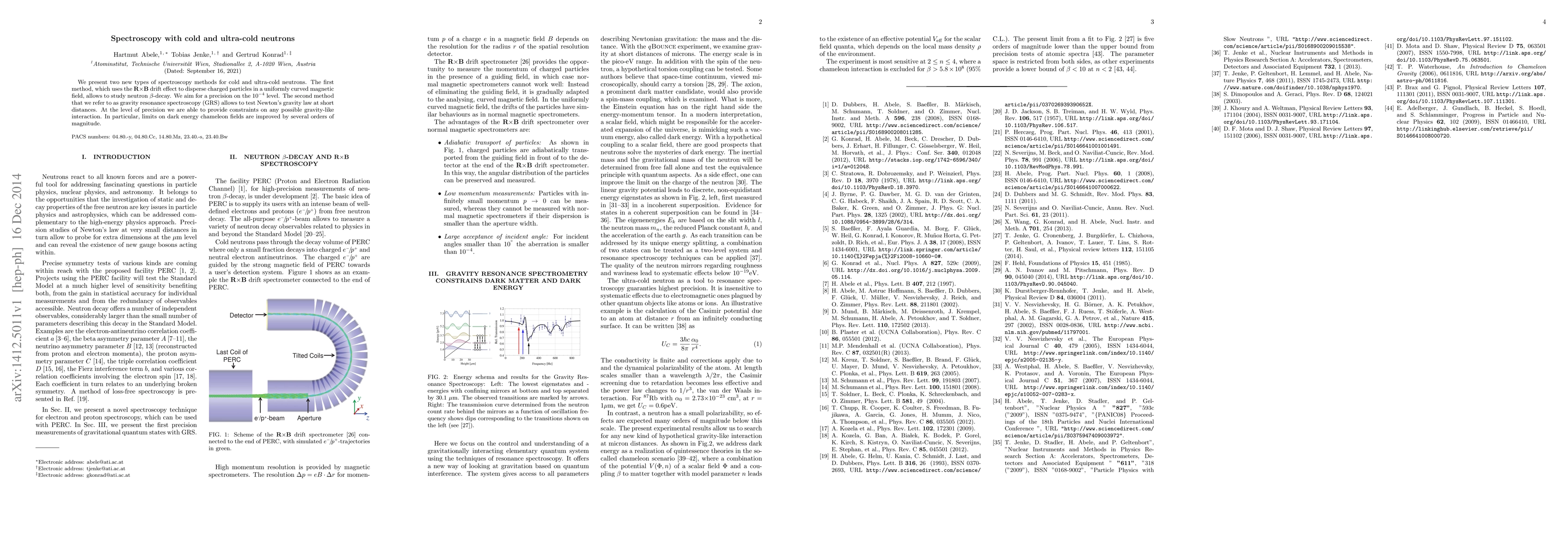 We present two new types of spectroscopy methods for cold and ultra-cold neutrons. The first method, which uses the \RB drift effect to disperse charged particles in a uniformly curved magnetic field, allows to study neutron $\beta$-decay. We aim for a precision on the 10$^{-4}$ level. The second method that we refer to as gravity resonance spectroscopy (GRS) allows to test Newton's gravity law at short distances. At the level of precision we are able to provide constraints on any possible gravity-like interaction. In particular, limits on dark energy chameleon fields are improved by several orders of magnitude.