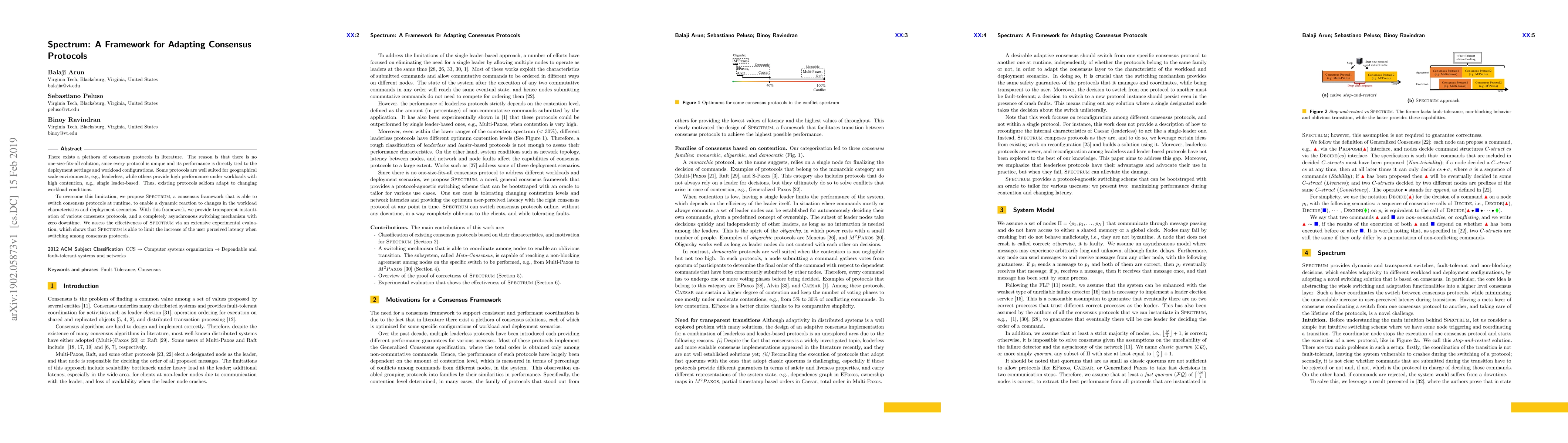 Spectrum introduces a novel framework that enables run-time adaptation of consensus protocols, ensuring zero downtime and minimal latency increase during protocol switches.