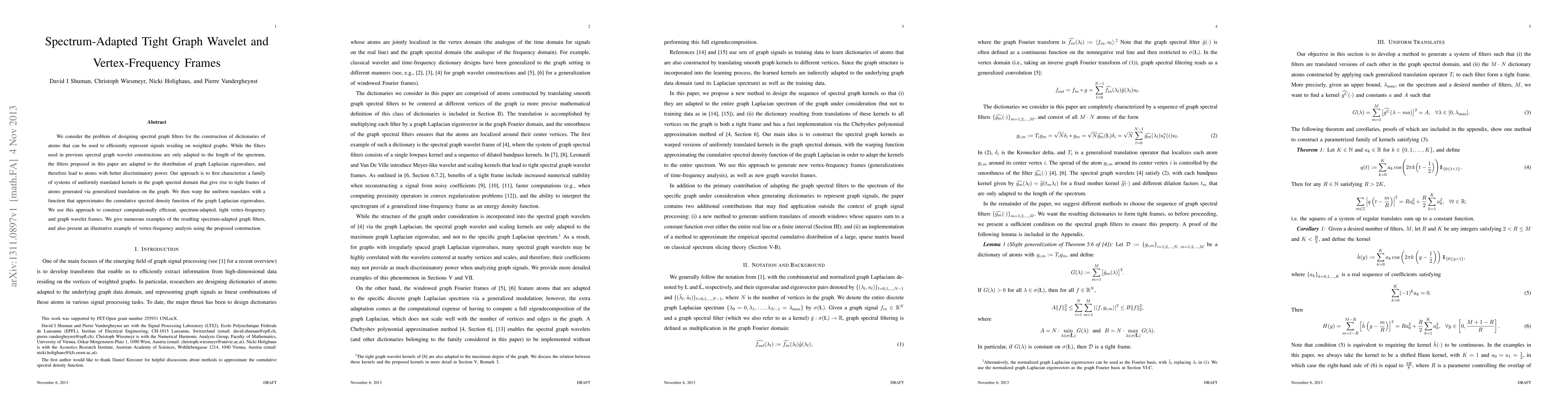 This paper proposes spectrum-adapted spectral graph filters to construct efficient graph wavelet and vertex-frequency frames, improving discriminatory power by adapting filters to the distribution of graph Laplacian eigenvalues. It introduces a method for generating these frames through uniformly translated kernels in the spectral domain.