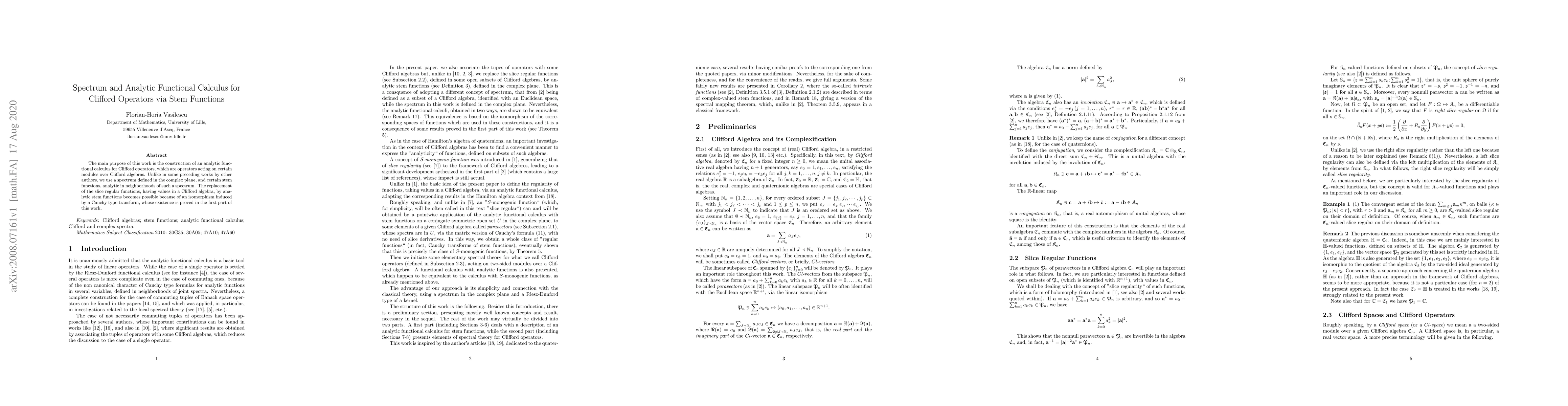 Researchers developed an analytic functional calculus for Clifford operators using a complex spectrum and stem functions, enabling new possibilities in mathematical analysis.