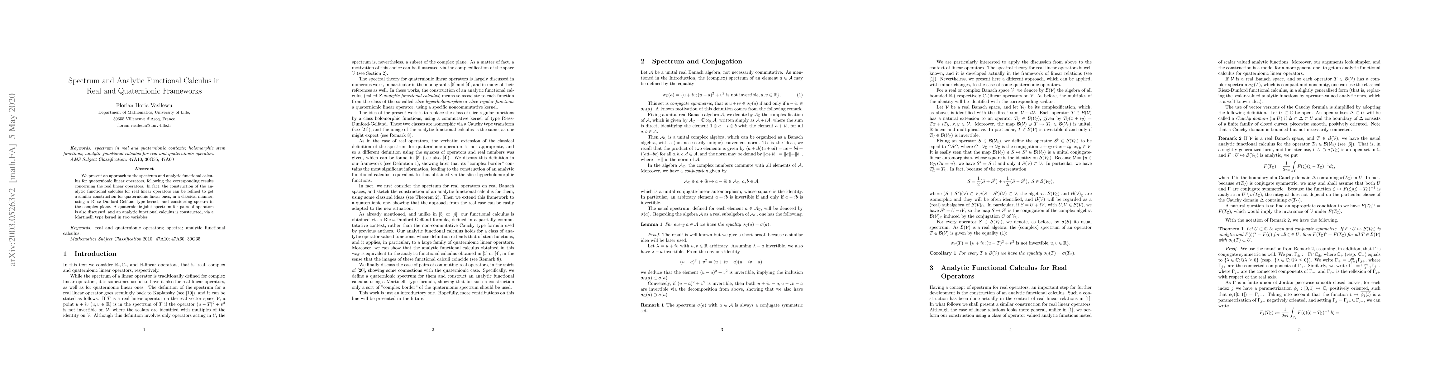 This paper explores the spectrum and analytic functional calculus for quaternionic linear operators, extending the established methods for real linear operators using a Riesz-Dunford-Gelfand type kernel and constructing a quaternionic joint spectrum for pairs of operators via a Martinelli type kernel.