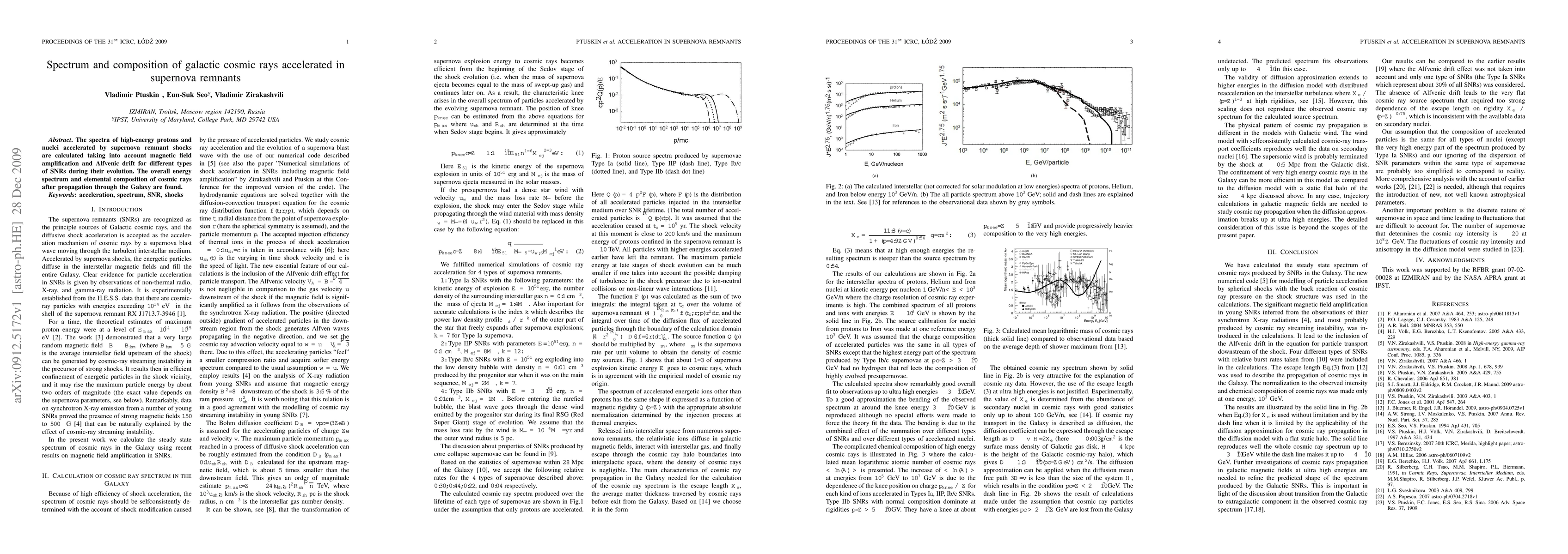 This paper calculates the spectra of high-energy protons and nuclei from supernova remnant shocks, considering magnetic field amplification and Alfvenic drift. It determines the overall energy spectrum and elemental composition of galactic cosmic rays after they propagate through the Galaxy.