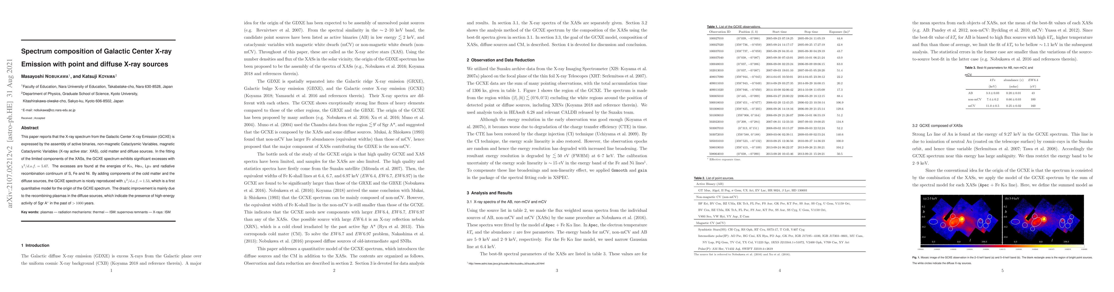 This paper reports that the X-ray spectrum from the Galactic Center X-ray Emission (GCXE) is expressed by the assembly of active binaries, non-magnetic Cataclysmic Variables, magnetic Cataclysmic Variables (X-ray active star: XAS), cold matter and diffuse sources. In the fitting of the limited components of the XASs, the GCXE spectrum exhibits significant excesses with $\chi^2/d.o.f. =5.67$. The excesses are found at the energies of K$\alpha$, He$\alpha$, Ly$\alpha$ and radiative recombination continuum of S, Fe and Ni. By adding components of the cold matter and the diffuse sources, the GCXE spectrum is nicely reproduced with $\chi^2/d.o.f. = 1.53$, which is a first quantitative model for the origin of the GCXE spectrum. The drastic improvement is mainly due to the recombining plasmas in the diffuse sources, which indicate the presence of high-energy activity of Sgr A$^*$ in the past of $> 1000$~years.