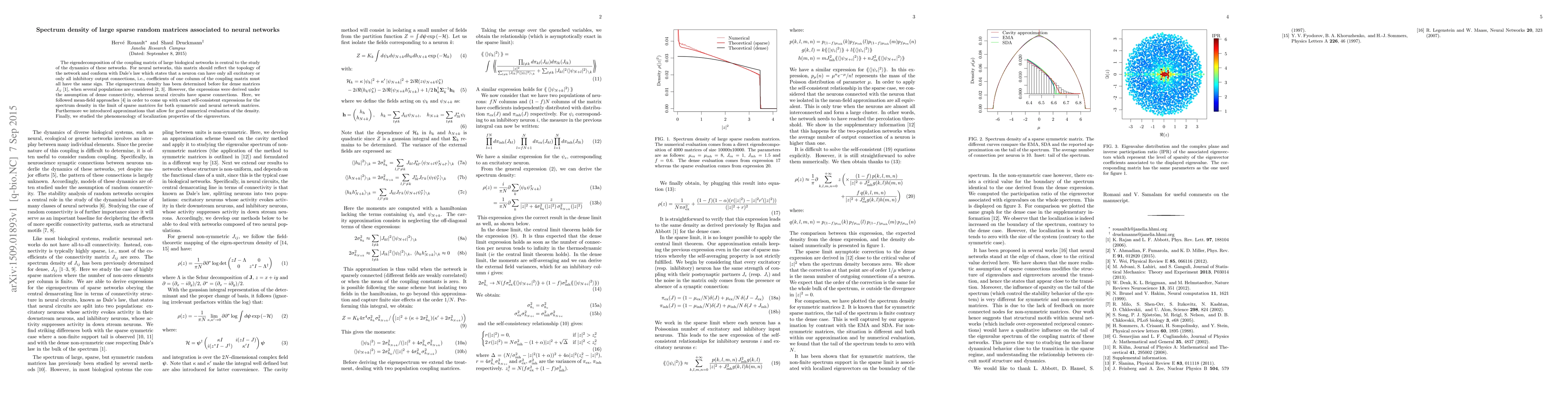 The eigendecomposition of the coupling matrix of large biological networks is central to the study of the dynamics of these networks. For neural networks, this matrix should reflect the topology of the network and conform with Dale's law which states that a neuron can have only all excitatory or only all inhibitory output connections, i.e., coefficients of one column of the coupling matrix must all have the same sign. The eigenspectrum density has been determined before for dense matrices $J_{ij}$, when several populations are considered. However, the expressions were derived under the assumption of dense connectivity, whereas neural circuits have sparse connections. Here, we followed mean-field approaches in order to come up with exact self-consistent expressions for the spectrum density in the limit of sparse matrices for both symmetric and neural network matrices. Furthermore we introduced approximations that allow for good numerical evaluation of the density. Finally, we studied the phenomenology of localization properties of the eigenvectors.