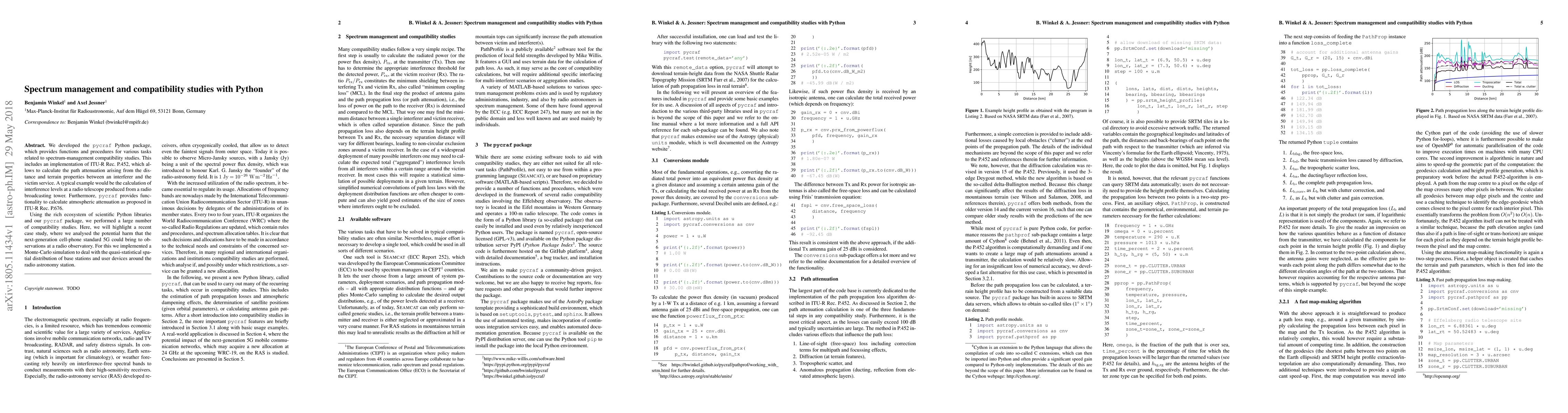 We developed the pycraf Python package, which provides functions and procedures for various tasks related to spectrum-management compatibility studies. This includes an implementation of ITU-R Rec. P.452, which allows to calculate the path attenuation arising from the distance and terrain properties between an interferer and the victim service. A typical example would be the calculation of interference levels at a radio telescope produced from a radio broadcasting tower. Furthermore, pycraf provides functionality to calculate atmospheric attenuation as proposed in ITU-R Rec. P.676. Using the rich ecosystem of scientific Python libraries and our pycraf package, we performed a large number of compatibility studies. Here, we will highlight a recent case study, where we analysed the potential harm that the next-generation cell-phone standard 5G could bring to observations at a radio observatory. For this we implemented a Monte-Carlo simulation to deal with the quasi-statistical spatial distribution of base stations and user devices around the radio astronomy station.