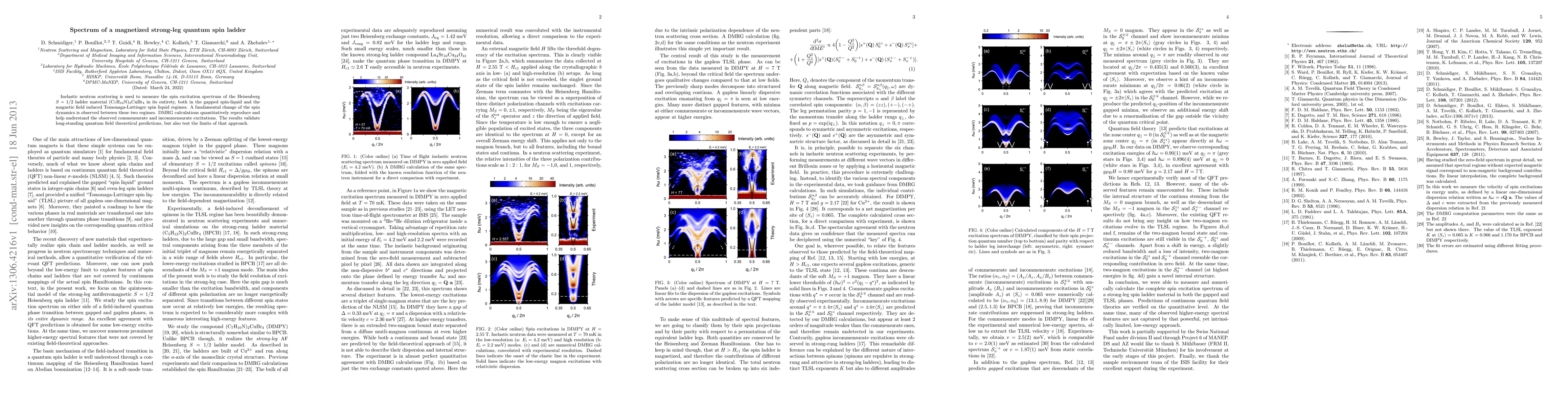 Inelastic neutron scattering is used to measure the spin excitation spectrum of the Heisenberg $S=1/2$ ladder material (C$_7$H$_10$N)$_2$CuBr$_4$ in its entirety, both in the gapped spin-liquid and the magnetic field induced Tomonaga-Luttinger spin liquid regimes. A fundamental change of the spin dynamics is observed between these two regimes. DMRG calculations quantitatively reproduce and help understand the observed commensurate and incommensurate excitations. The results validate long-standing quantum field theoretical predictions, but also test the limits of that approach.