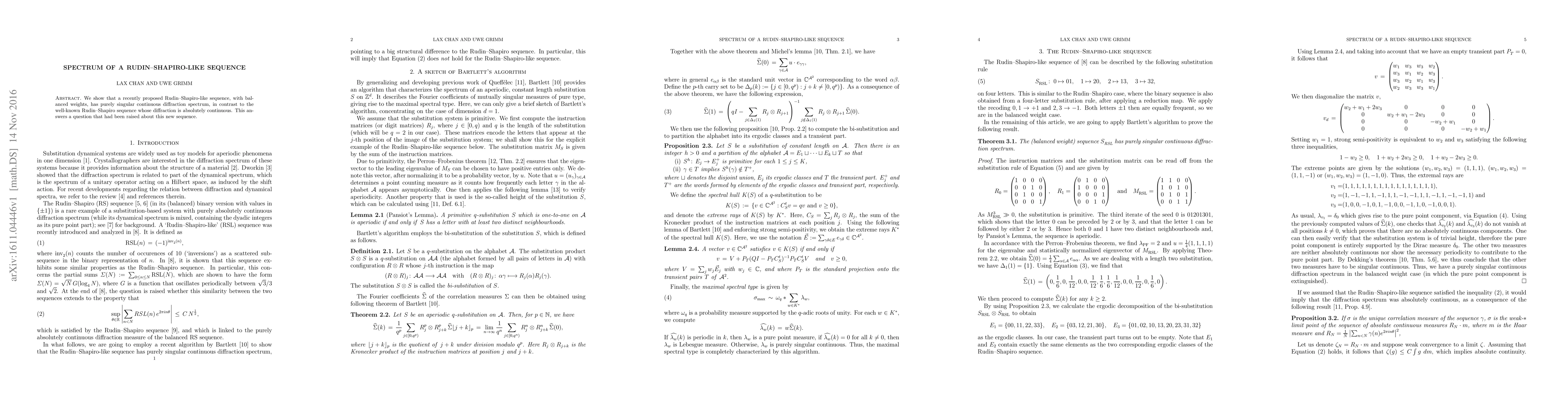This paper demonstrates that a newly proposed Rudin-Shapiro-like sequence exhibits a purely singular continuous diffraction spectrum, differing from the absolutely continuous diffraction of the traditional Rudin-Shapiro sequence, thus providing an answer to a previously raised question.