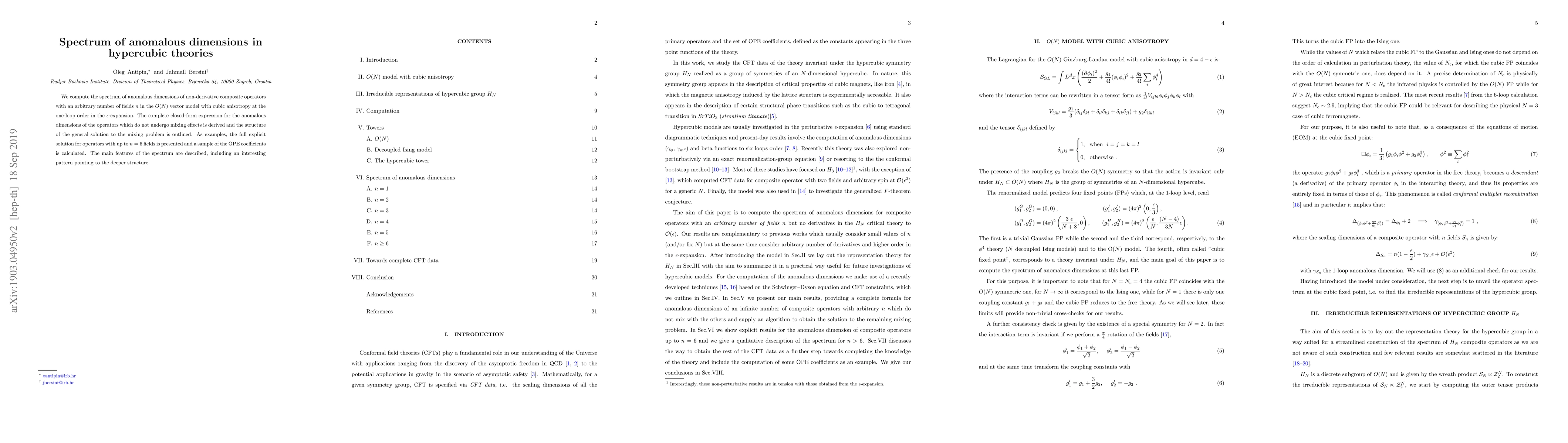 We compute the spectrum of anomalous dimensions of non-derivative composite operators with an arbitrary number of fields $n$ in the $O(N)$ vector model with cubic anisotropy at the one-loop order in the $\epsilon$-expansion. The complete closed-form expression for the anomalous dimensions of the operators which do not undergo mixing effects is derived and the structure of the general solution to the mixing problem is outlined. As examples, the full explicit solution for operators with up to $n=6$ fields is presented and a sample of the OPE coefficients is calculated. The main features of the spectrum are described, including an interesting pattern pointing to the deeper structure.