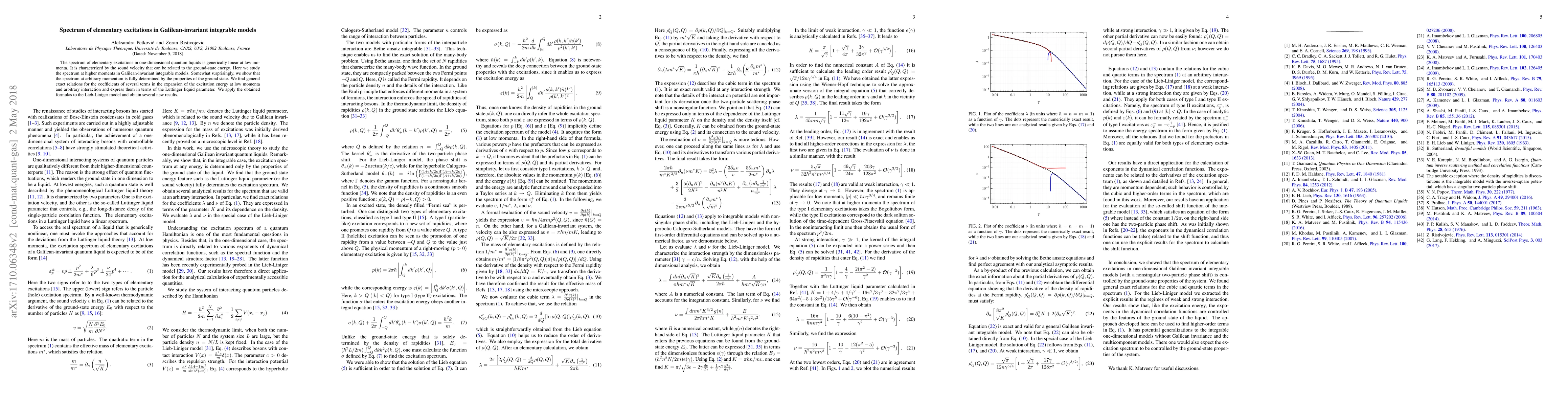 The spectrum of elementary excitations in one-dimensional quantum liquids is generically linear at low momenta. It is characterized by the sound velocity that can be related to the ground state energy. Here we study the spectrum at higher momenta in Galilean invariant integrable models. Somewhat surprisingly, we show that the spectrum at arbitrary momentum is fully determined by the properties of the ground state. We find general exact relations for the coefficients of several terms in the expansion of the excitation energy at low momenta and arbitrary interaction and express them in terms of the Luttinger liquid parameter. We apply the obtained formulas to the Lieb-Liniger model and obtain several new results.