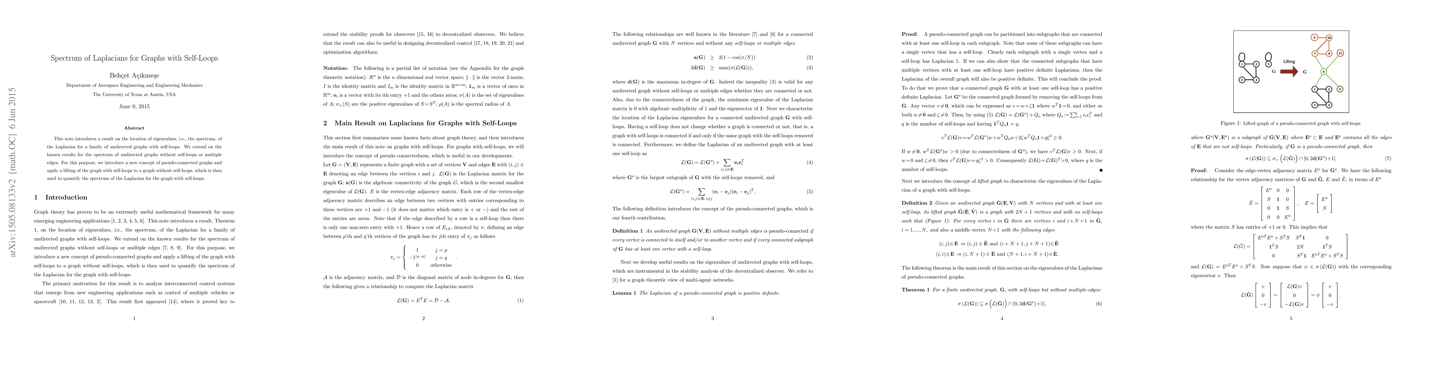 This note introduces a result on the location of eigenvalues, i.e., the spectrum, of the Laplacian for a family of undirected graphs with self-loops. We extend on the known results for the spectrum of undirected graphs without self-loops or multiple edges. For this purpose, we introduce a new concept of pseudo-connected graphs and apply a lifting of the graph with self-loops to a graph without self-loops, which is then used to quantify the spectrum of the Laplacian for the graph with self-loops.