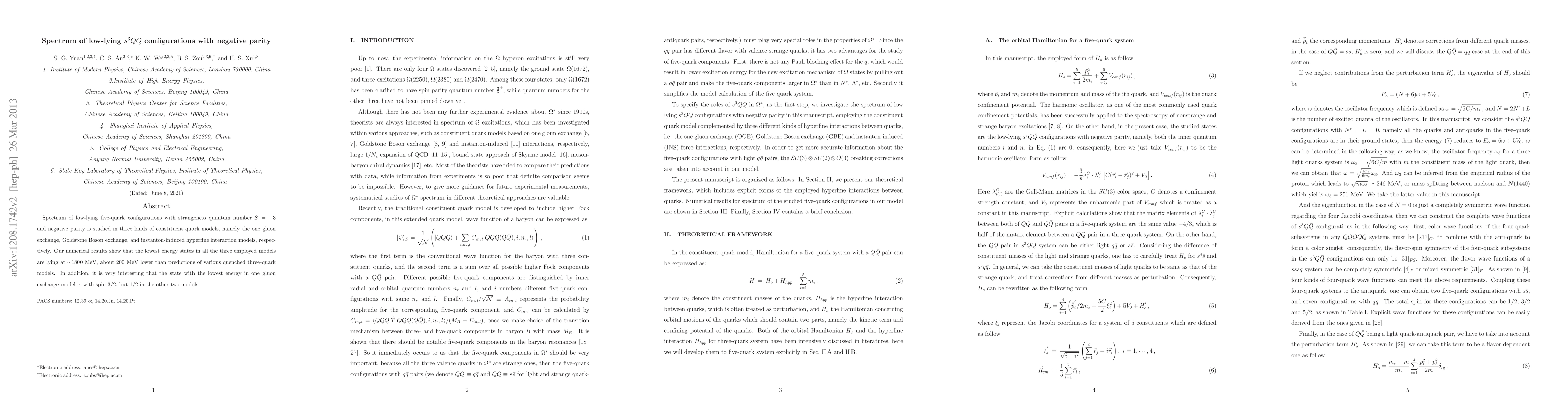 This research paper studies low-lying five-quark configurations with negative parity in three quark models, finding that the lowest energy states are around 1800 MeV, which is 200 MeV lower than previous predictions.