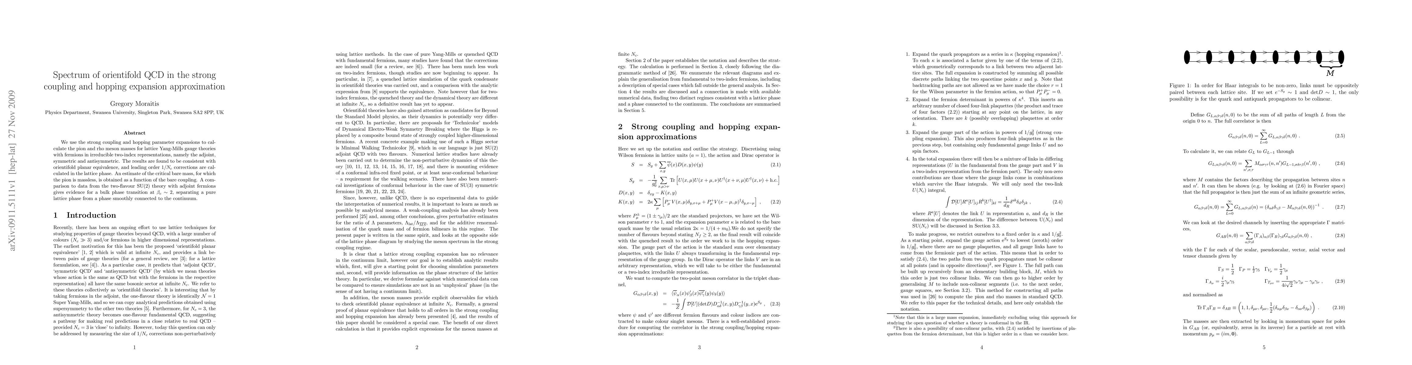 We use the strong coupling and hopping parameter expansions to calculate the pion and rho meson masses for lattice Yang-Mills gauge theories with fermions in irreducible two-index representations, namely the adjoint, symmetric and antisymmetric. The results are found to be consistent with orientifold planar equivalence, and leading order 1/N corrections are calculated in the lattice phase. An estimate of the critical bare mass, for which the pion is massless, is obtained as a function of the bare coupling. A comparison to data from the two-flavour SU(2) theory with adjoint fermions gives evidence for a bulk phase transition at beta~2, separating a pure lattice phase from a phase smoothly connected to the continuum.