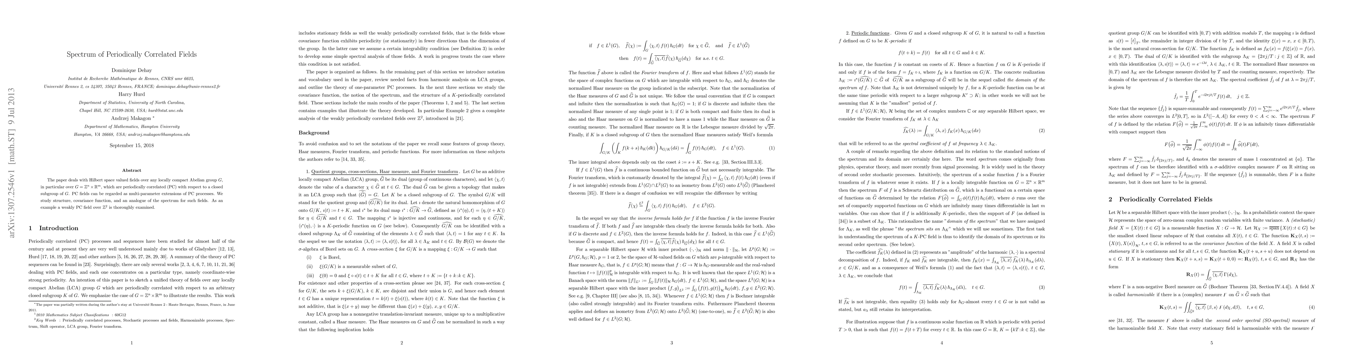 The paper deals with Hilbert space valued fields over any locally compact Abelian group G, in particular over G = Z^n x R^m, which are periodically correlated (PC) with respect to a closed subgroup of G. PC fields can be regarded as multi-parameter extensions of PC processes. We study structure, covariance function, and an analogue of the spectrum for such fields. As an example a weakly PC field over Z^2 is thoroughly examined.