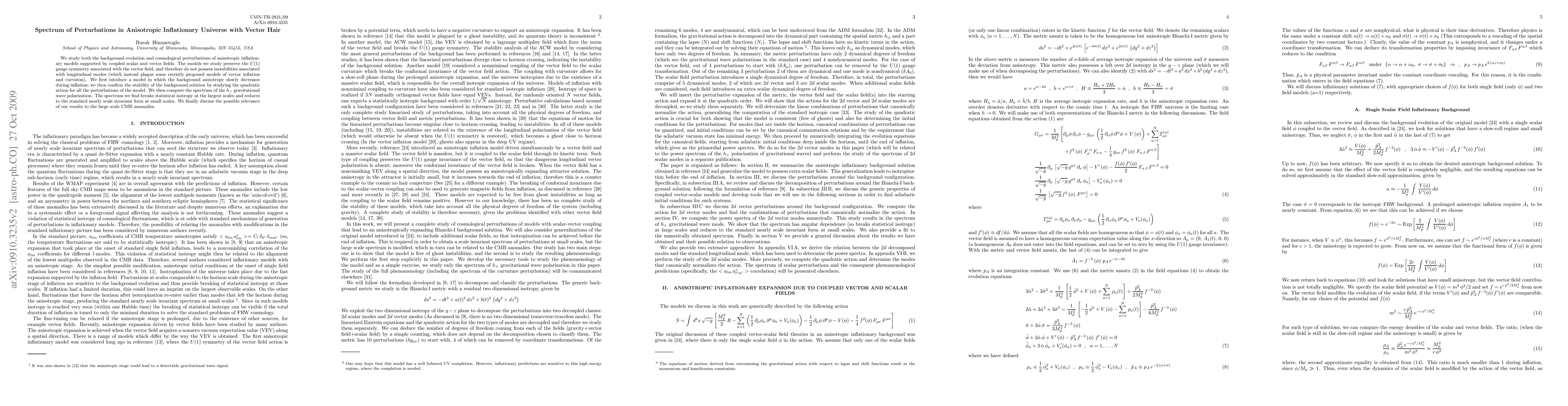 This paper investigates anisotropic inflationary models with coupled scalar and vector fields, focusing on the stability of the background and the spectrum of cosmological perturbations. The study finds a gravitational wave spectrum that breaks statistical isotropy on large scales but reverts to a nearly scale-invariant form at smaller scales, potentially relevant for explaining large-scale CMB anomalies.