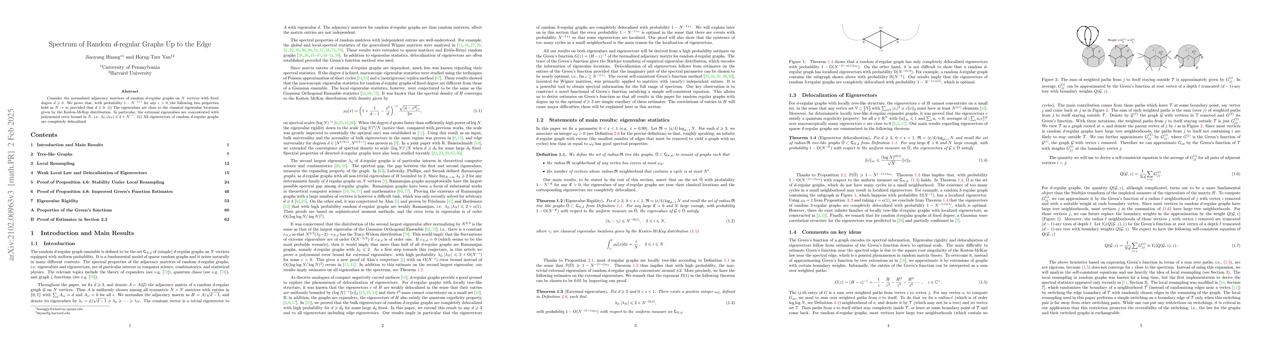 This paper proves that the eigenvalues of normalized adjacency matrices of large random $d$-regular graphs, with $d\geq3$, closely match the Kesten-McKay distribution, and the extremal eigenvalues are tightly concentrated with polynomial error. Additionally, it shows that all eigenvectors in these graphs are completely delocalized.