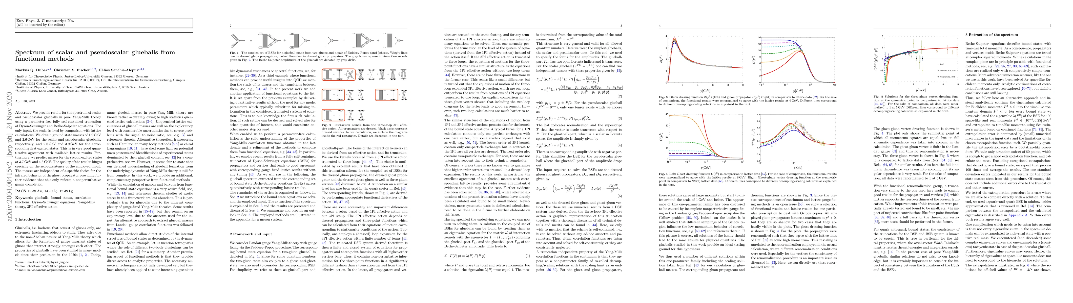 We provide results for the spectrum of scalar and pseudoscalar glueballs in pure Yang-Mills theory using a parameter-free fully self-contained truncation of Dyson-Schwinger and Bethe-Salpeter equations. The only input, the scale, is fixed by comparison with lattice calculations. We obtain ground state masses of $1.9\,\text{GeV}$ and $2.6\,\text{GeV}$ for the scalar and pseudoscalar glueballs, respectively, and $2.6\,\text{GeV}$ and $3.9\,\text{GeV}$ for the corresponding first excited states. This is in very good quantitative agreement with available lattice results. Furthermore, we predict masses for the second excited states at $3.7\,\text{GeV}$ and $4.3\,\text{GeV}$. The quality of the results hinges crucially on the self-consistency of the employed input. The masses are independent of a specific choice for the infrared behavior of the ghost propagator providing further evidence that this only reflects a nonperturbative gauge completion.